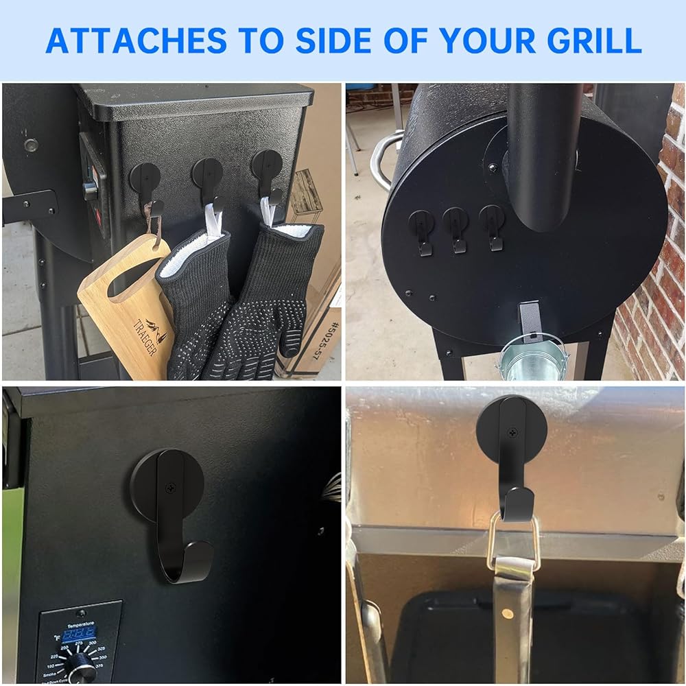 Application :Our magnetic storage grill hooks are a must have for a grill.Magnet Hooks for Grills with built-in strong neodymium magnets,they effortlessly attaches to side of your compatible for Traeger grill.Outdoor Magnetic Hooks have offers a secure and reliable grip,can easy to hang your light or heavy grill tools,and others.