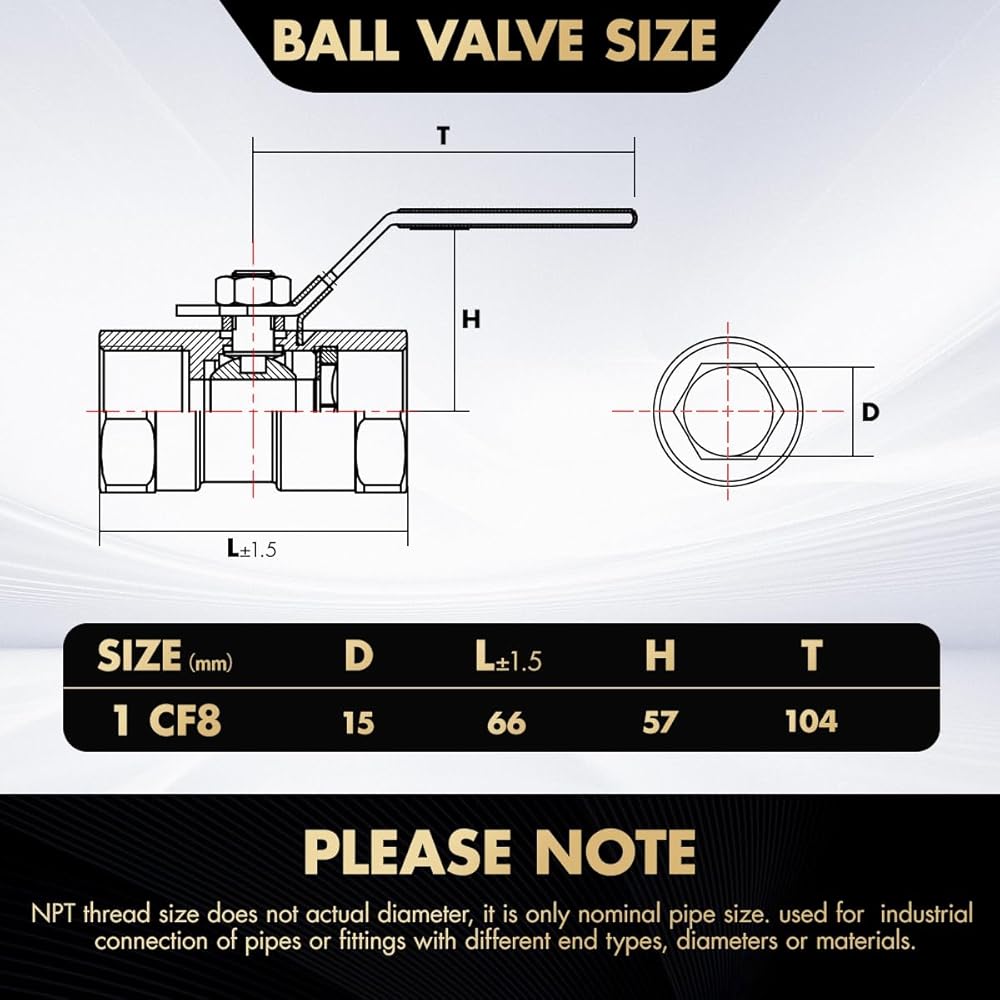 【1/4 inch ball valve】 This ball valve is used in many scenarios, such as household water pipes, farm irrigation, oil and gas transportation pipelines, and so on.Nominal Working Pressure:1000 WOG, Max 1000 psi for Water, Oil, Gas.
