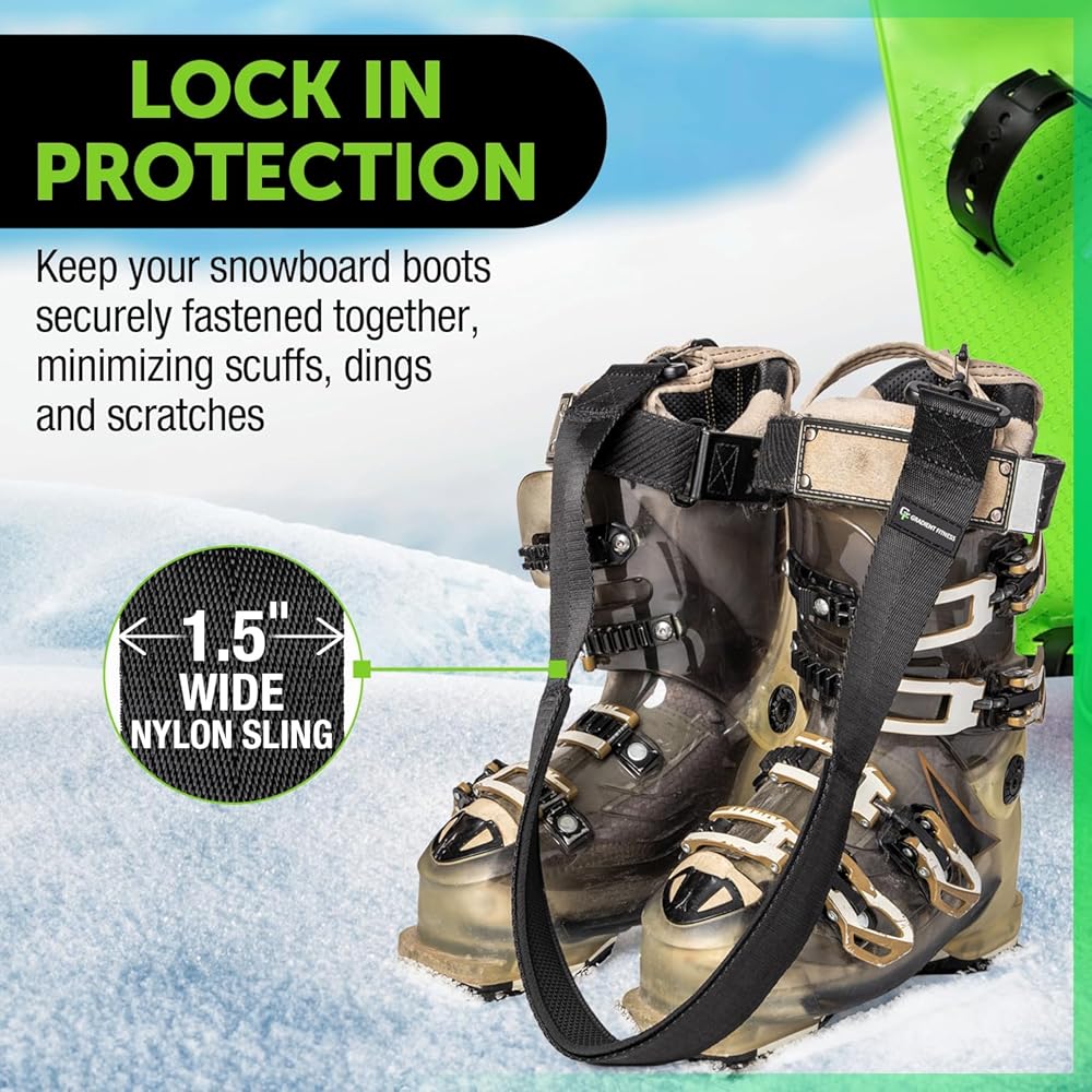 𝐏𝐑𝐎𝐓𝐄𝐂𝐓𝐒 𝐁𝐎𝐎𝐓𝐒 𝐅𝐑𝐎𝐌 𝐃𝐀𝐌𝐀𝐆𝐄: The ski boot carry strap keeps your boots fastened together, reducing the risk of misplacement and scuffs, scratches, or other damage during transport. Maintain the longevity and appearance of your expensive ski boots.
