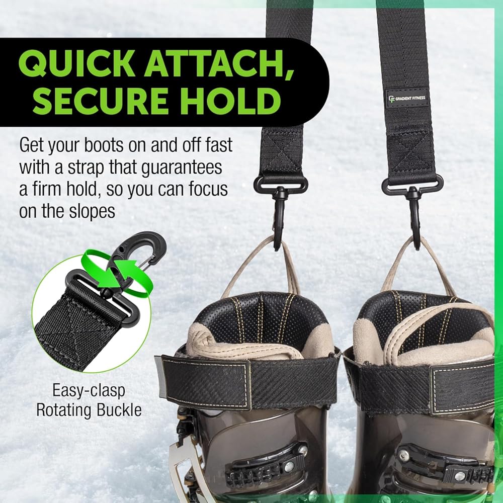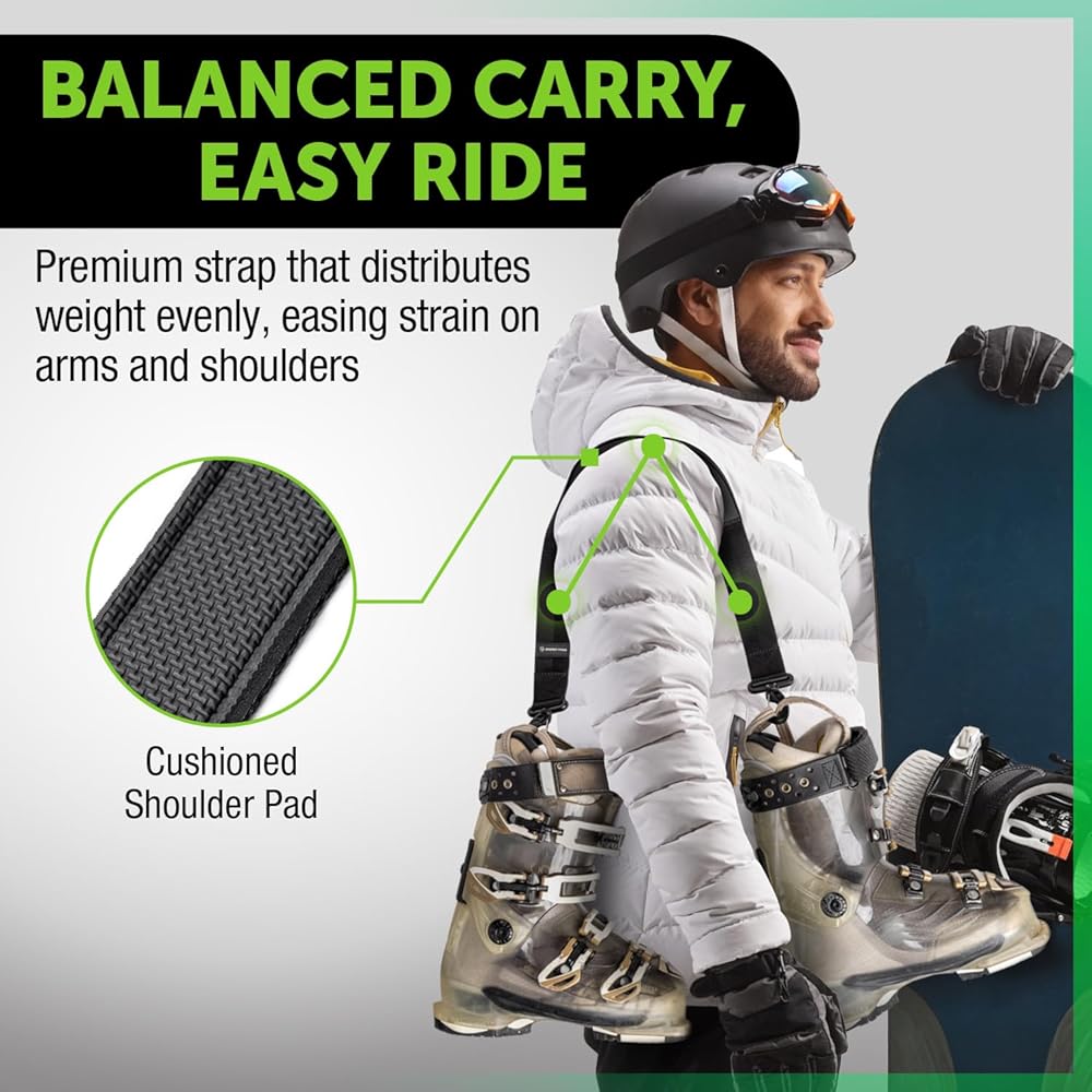𝐂𝐎𝐍𝐕𝐄𝐍𝐈𝐄𝐍𝐓 𝐏𝐎𝐑𝐓𝐀𝐁𝐈𝐋𝐈𝐓𝐘: Transport your heavy ski boots effortless by allowing you to sling them over your shoulder, freeing up your hands for other gear and ensuring easy mobility from car to slopes.