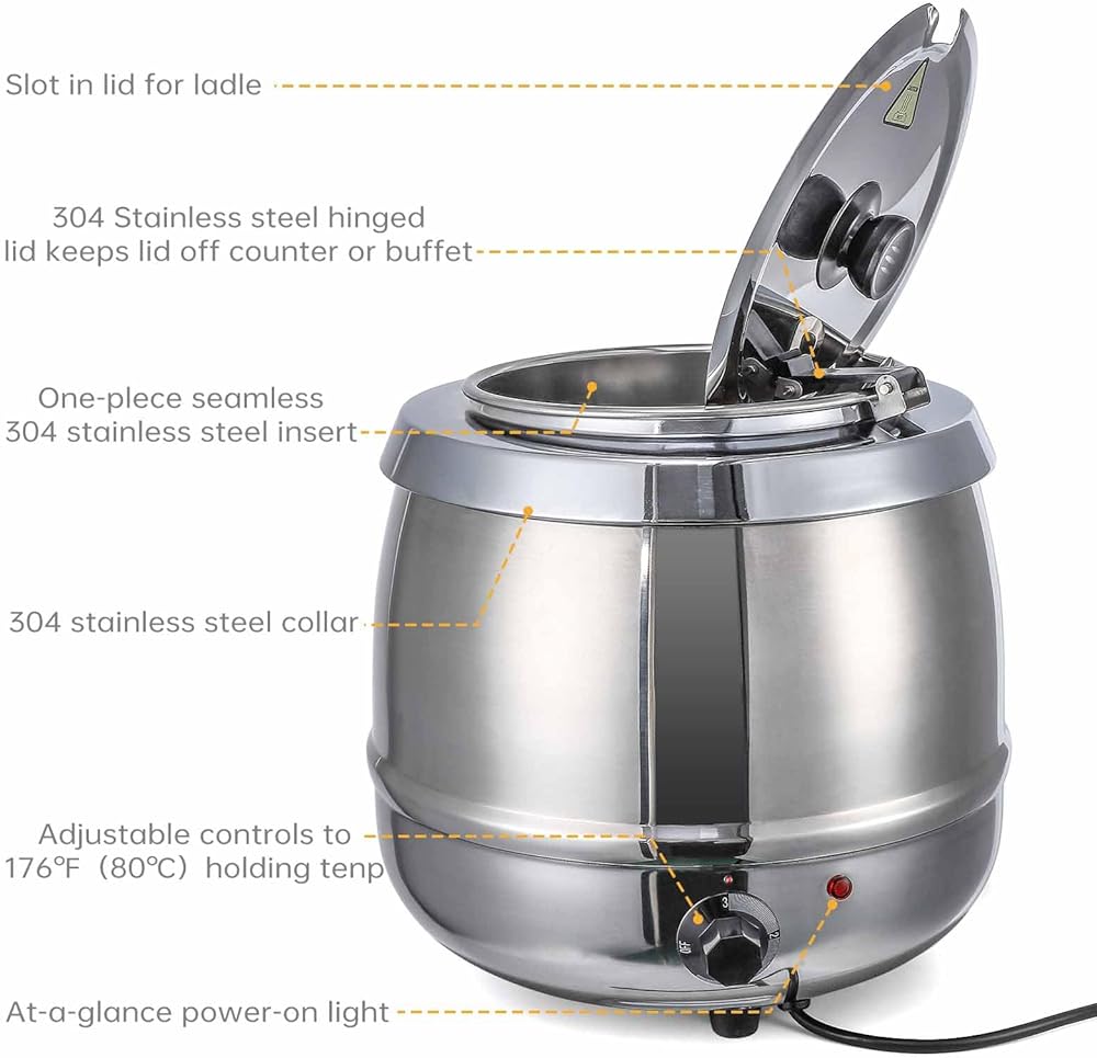 Generous Capacity: With a 10.5 quart size, this soup warmer provides ample space for serving large quantities of soup, making it perfect for various events and occasions.