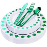 THANKSGIVING PLATES DINNERWARE:Our fall disposable plates and gold plastic utensils can get 25 dinner plates, 25 dessert plates, 25 knives, 25 forks and 25 spoons. Enjoy the best dining experience for 25 guests, The Thanksgiving plastic dinnerware will let you remember many times.