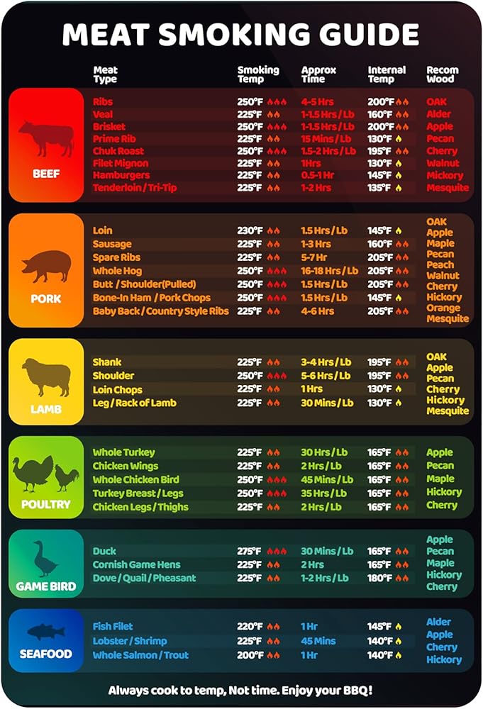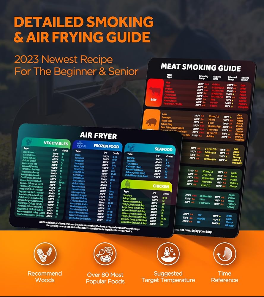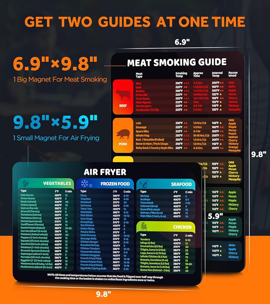 2-in-1 Magnetic Meat Smoking Guide & Air Frying Guide with Temperature, Time & Wood Flavors, Useful Air Fryer & Smoker Accessories Kitchen Gadgets, Waterproof Magnet Sheet For Quick Reference
