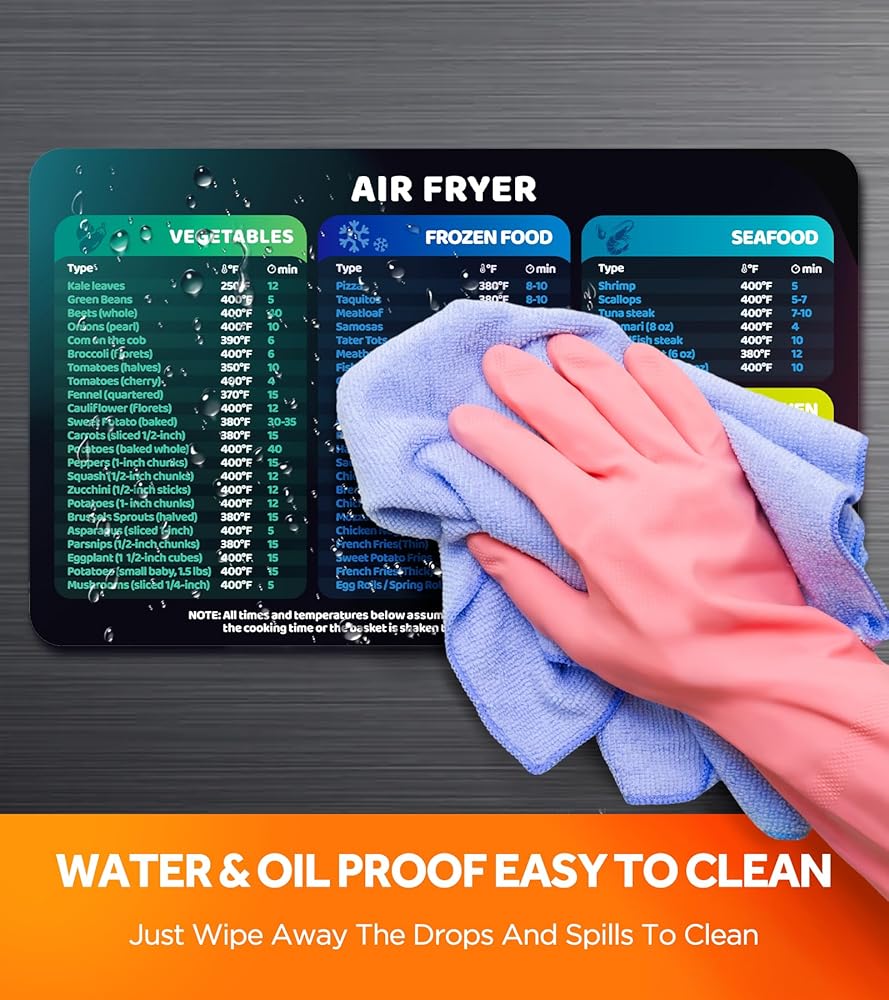 ALWAYS ON HAND - No more bother searching for the guidance on phone when you are occupied with tong and sprayer! Just "grip" these strong magnetic guides to your smoker, air fryer or any metallic surface so you can take a quick glance whenever you need them.