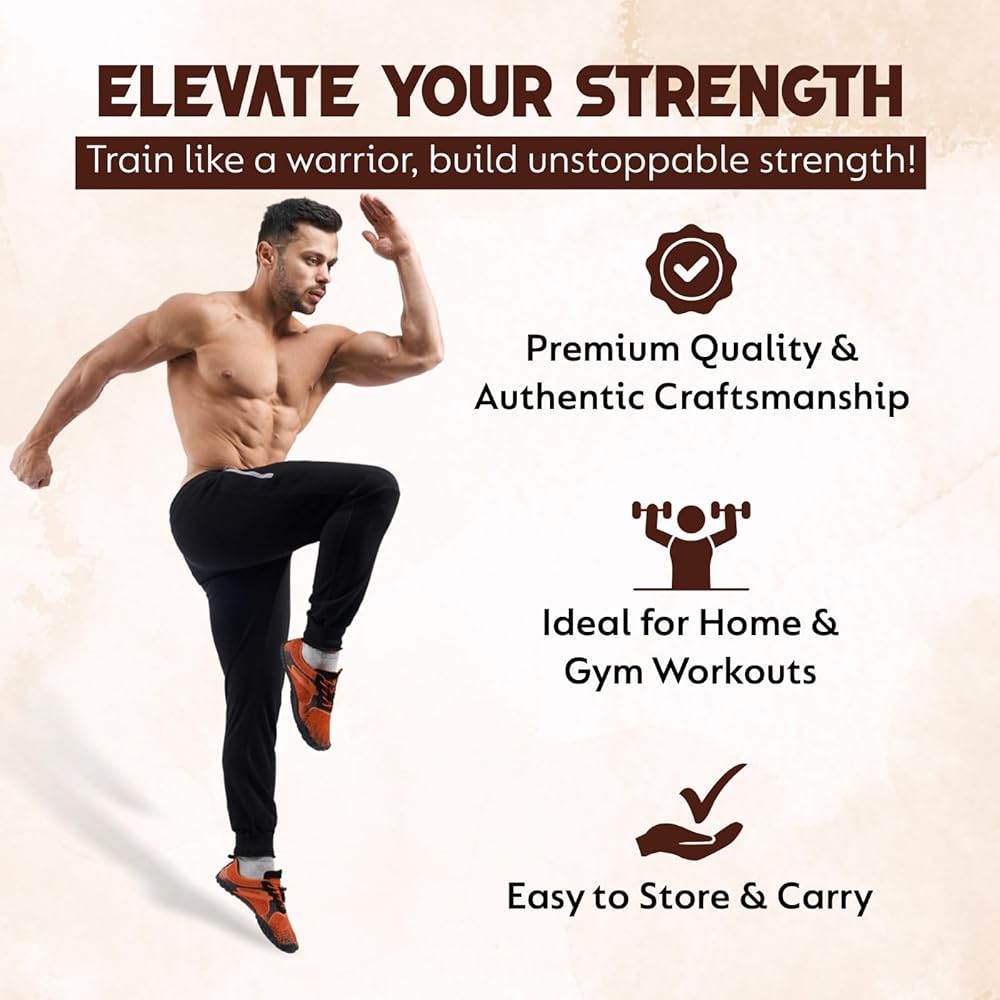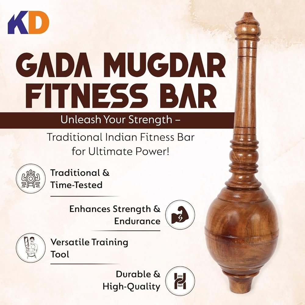 INDIAN MACE SHOULDER EQUIPMENT USAGE & CARE - Made of BABOOL WOOD For Lasting Performance of Wooden Fitness Equipment Kindly Apply COCONUT OIL Every Month on the Equipment to Avoid Air Bubble or Air Getting in the Equipment. HANUMAN GADA - Introducing the HANUMAN Gada, Discover the legendary HANUMAN Gada, an iconic weapon associated with the mighty warrior HANUMAN from Indian mythology. Known for its unparalleled strength and power, the HANUMAN Gada has become a symbol of courage and heroism. FUNCTIONS - The Hanuman Gada is a powerful tool for building upper body strength. Exercises such as gada swings, squats, lunges, and overhead presses with the gada engage and strengthen muscles in the shoulders, arms, chest, and back. BENEFITS - 100% Natural Wood possesses inherent shock-absorbing properties that benefit athletes during sports and fitness activities. When using wooden sports equipment, such as bats or gym flooring, the natural damping effect of wood minimizes stress on the body. FUNCTIONS - Your shoulder's best friend during push-ups! How? By encouraging your arms to rotate externally at the shoulder joint, it ensures you maintain perfect posture and technique every time you push up. Result? Less stress on your shoulder joints, making workouts safer and more effective. Grip Strength Development - Holding onto the Hanuman Gada challenges and improves grip strength. The weight and shape of the gada require a strong grip, making it an effective tool for grip strength training.
