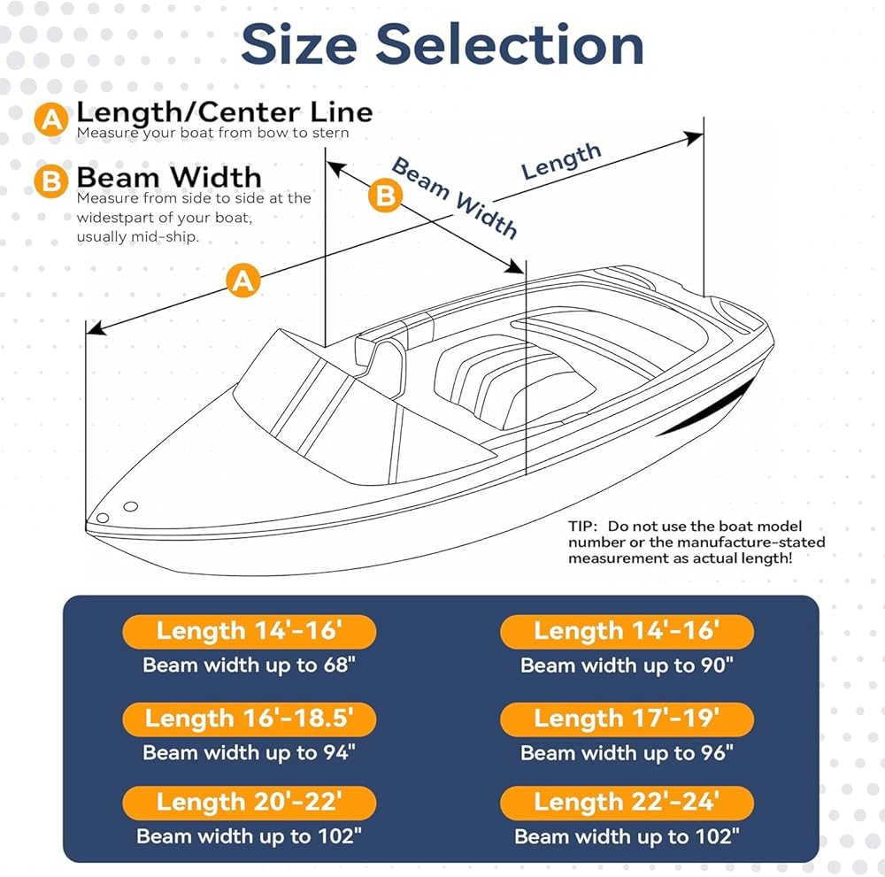 𝑼𝒏𝒊𝒗𝒆𝒓𝒔𝒂𝒍 𝑩𝒐𝒂𝒕 𝑪𝒐𝒗𝒆𝒓 𝒘𝒊𝒕𝒉 𝑺𝒕𝒐𝒓𝒂𝒈𝒆 𝑩𝒂𝒈: This heavy-duty boat cover fits for 17 '-19' long, beam width up to 96'' v-hull tri-hull runabout pro-style fishing boat. With widened and thickend 2-inch (others are 1-inch) webbing loops with Bartack Stiches & storage bag, our bass boat cover is perfect for mooring and long-term storage.