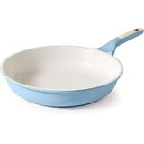 INDUCTION COMPATIBLE - The frying pan is made of heavy-duty cast aluminum with induction base to prevent from warping, wobbling, or degrading over time, heats fast and evenly. Suitable for all stovetops, including Induction cooktop.
