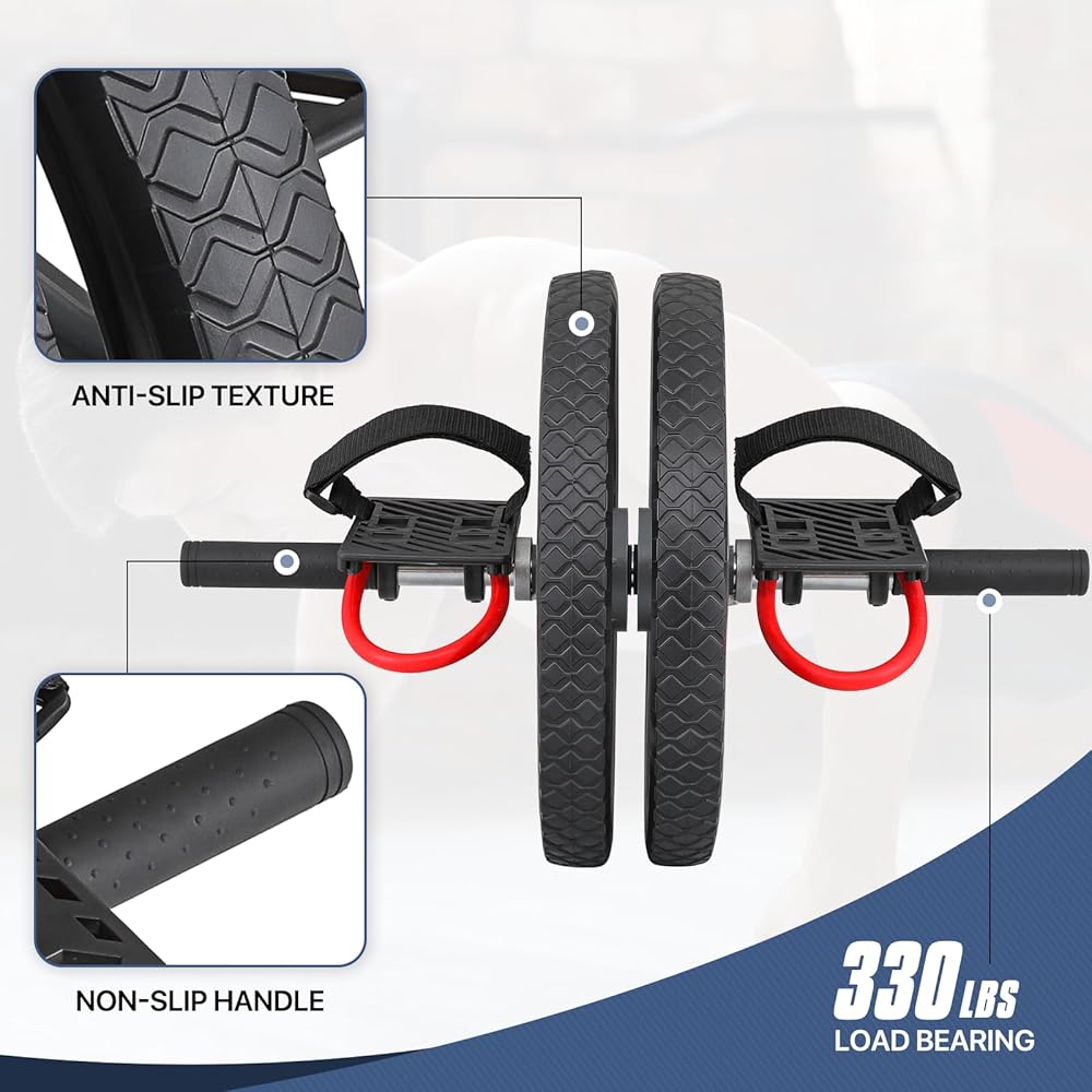Sturdy and Durable - The ab roller for abs workout has a high-tensile steel tube that supports up to 330 pounds. The handles are covered with anti-slip particles to provide superior comfort and protection as you exercise.