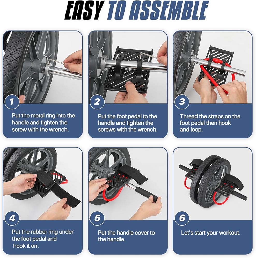 Easy Assembly and Carry - Lightweight and easy to assemble ab wheel roller, you can use it to reach your fitness goal anywhere. Perfect for home, office and gym, but also handy enough to take with you when you travel.
