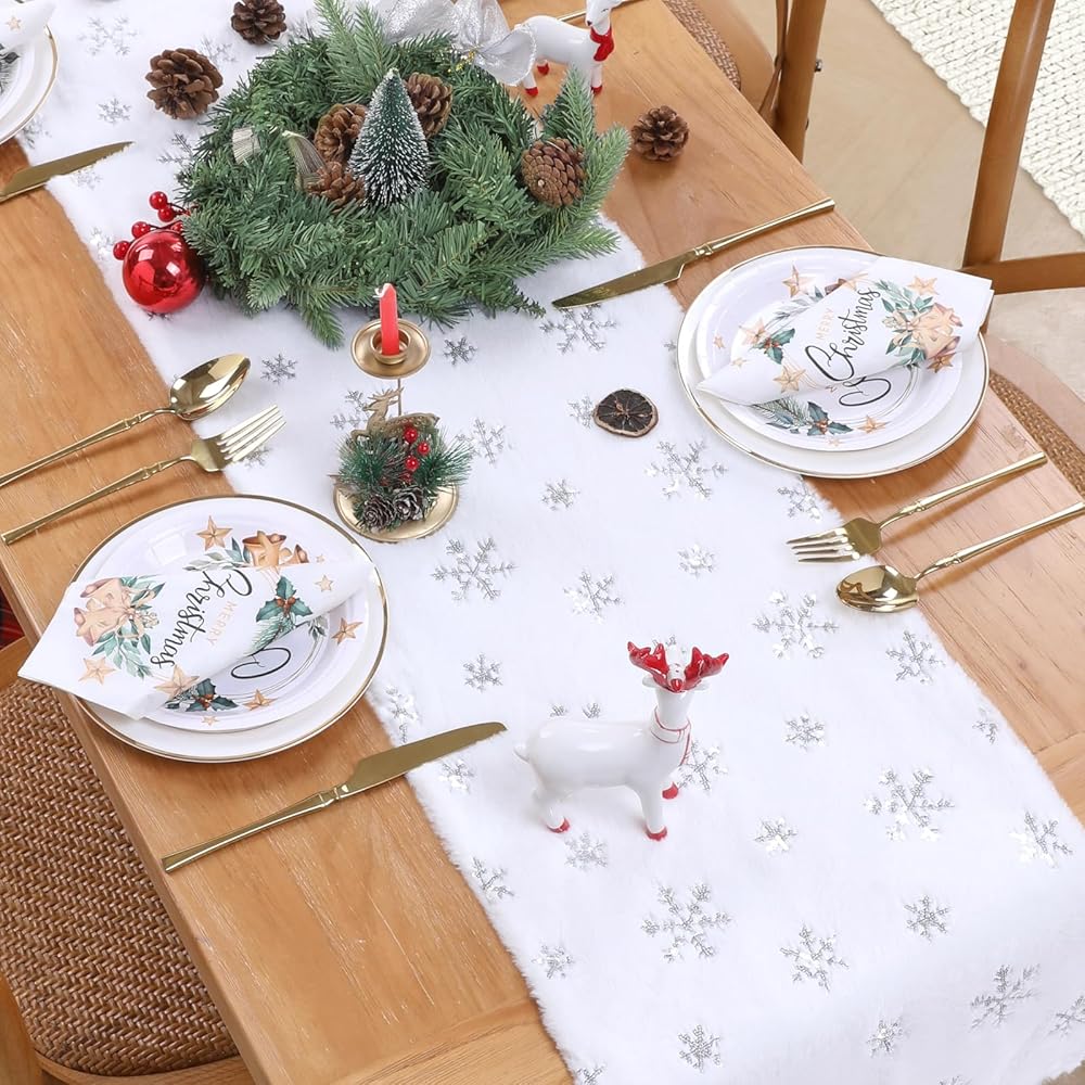 High Quality Materials: Each one of christmas table runner is made of faux fur, thick, durable, soft to the touch, easy to clean and easy to be flatten