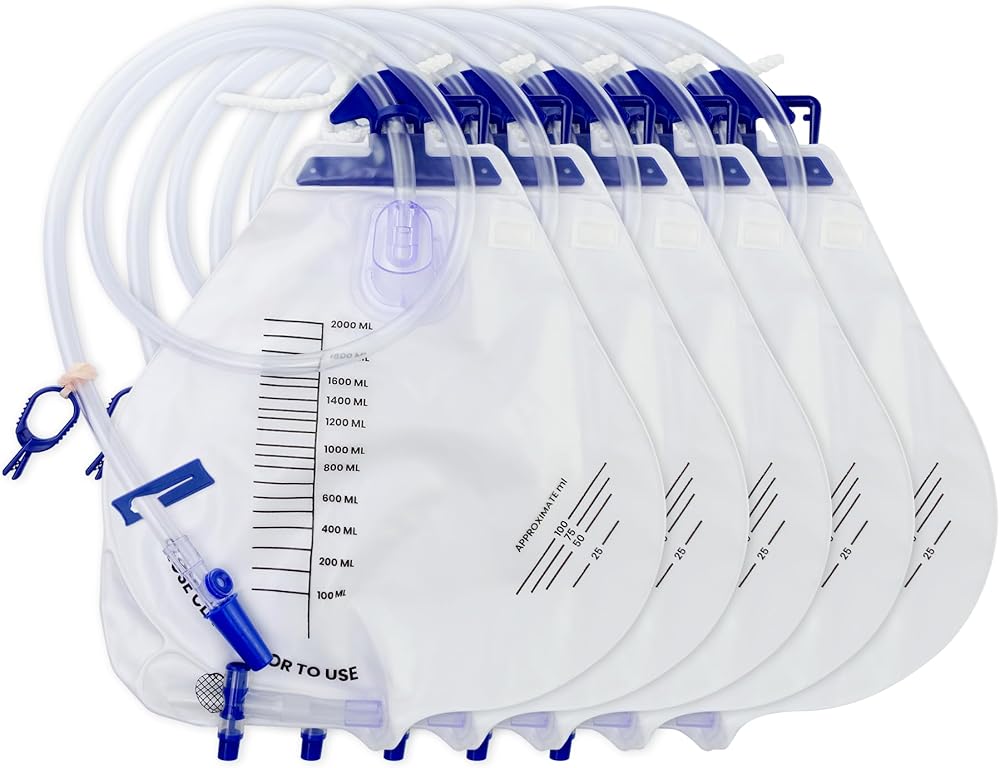 [Easy to Use:]Designed for simplicity,the 2000ml catheter bags has a user-friendly connection for quick catheter attachment and a one-handed drainage switch,along with clear markings for easy monitoring