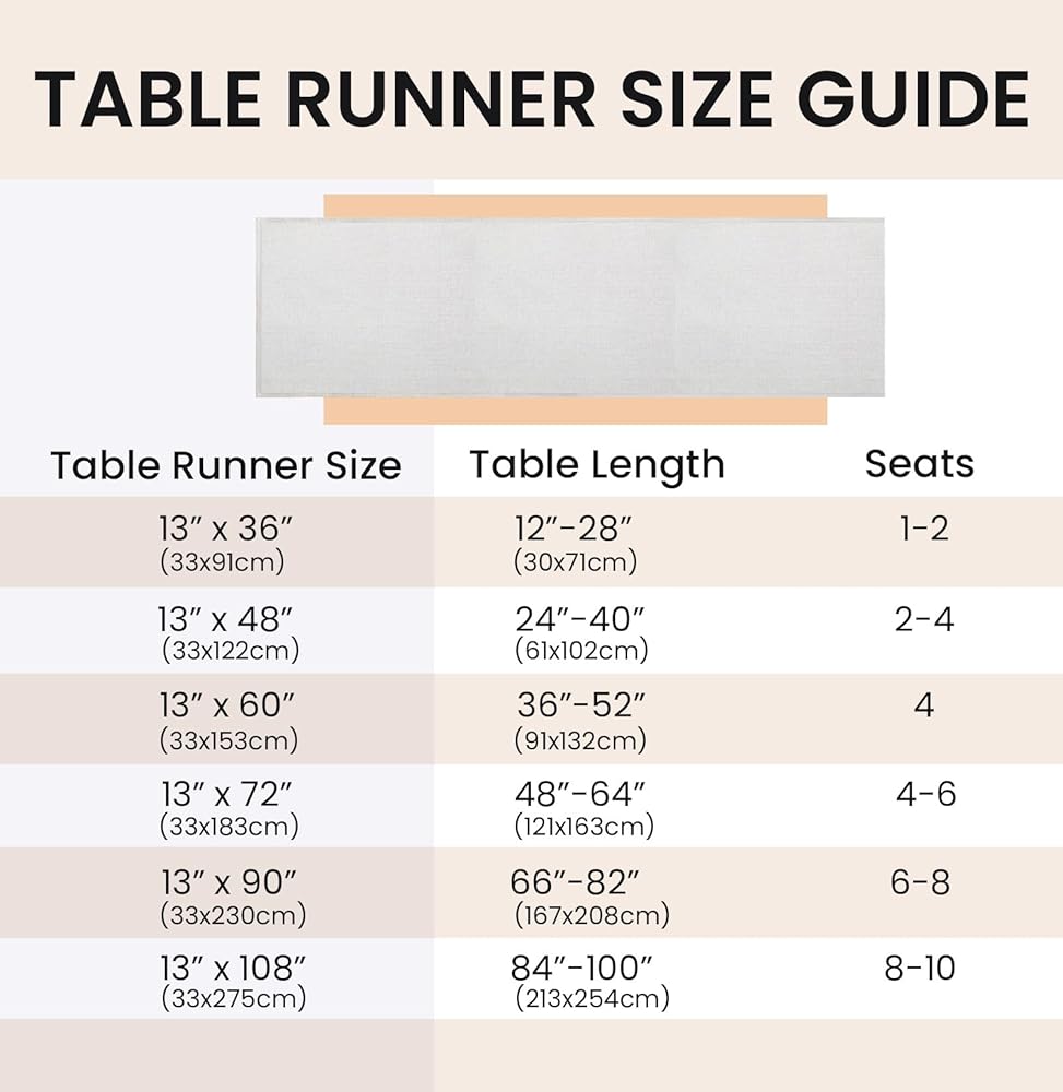 Perfect Sizing: Our 13 x 72 inch table runner is tailored for tables seating 4-6 people, ensuring a perfect fit and a delightful dining experience.