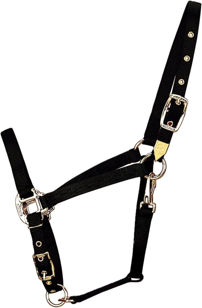 Hamilton Deluxe Horse Halter, 1" Triple Ply Nylon, Adjustable Chin Strap, Easy On/Off Throat Snap, Average Horse, Arabian, or Yearling Draft, 800-1100 lbs, Black