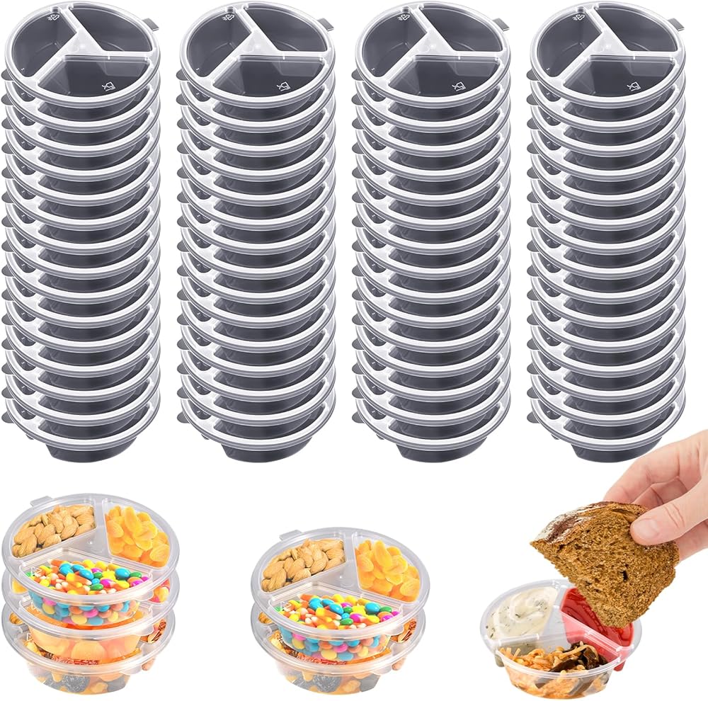 Compact Design: The three compartments allow for easy separation of different condiments or snacks, ideal for lunchboxes or gatherings.
