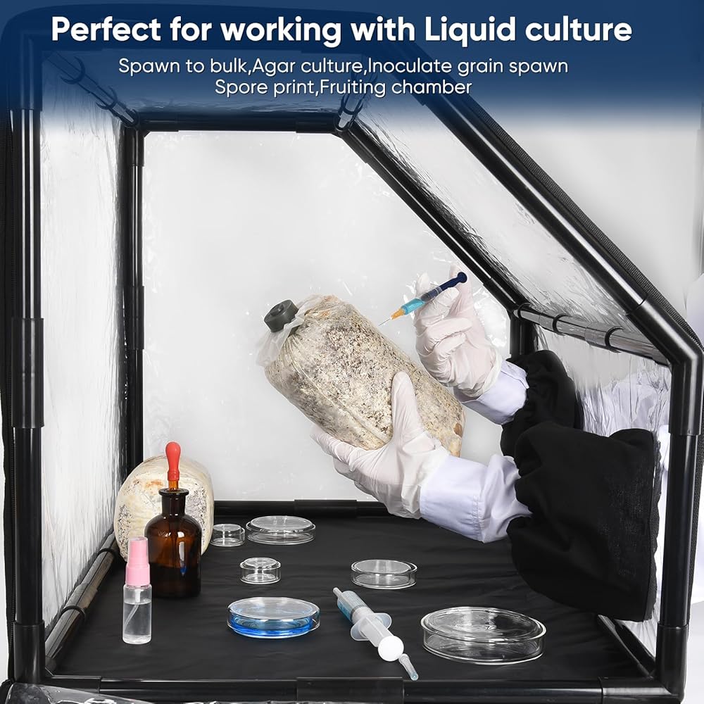 🍄【An Atmospheric Shield】Our still air box mycology prevents airborne contaminants from seeping into your workspace. Increases the success of your mushroom plants and other hydroponic procedures that require a contaminant-free environment.Also ensure a strong seal that keeps out outside dust.