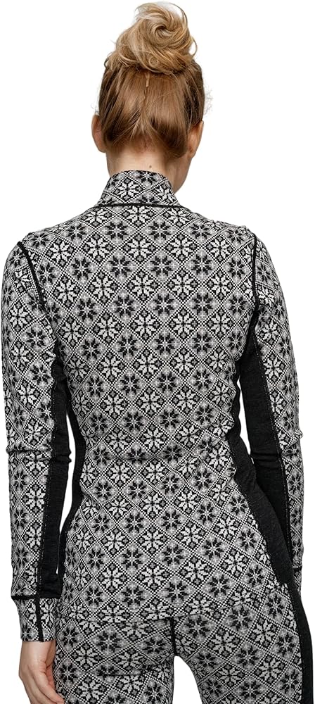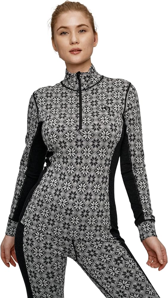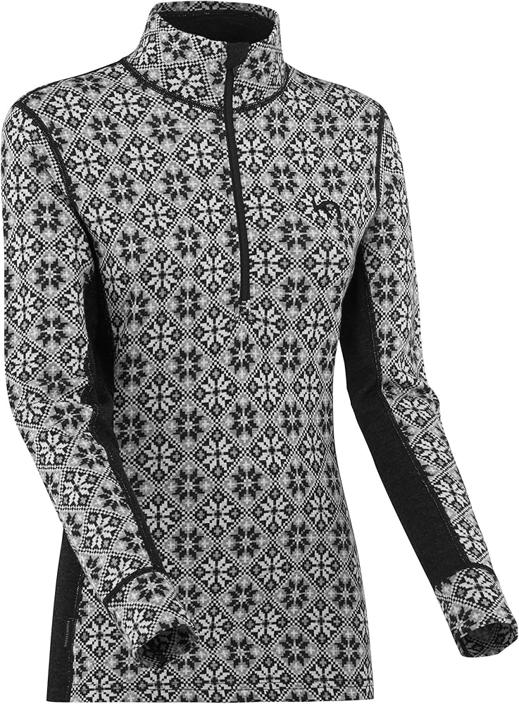 KARI TRAA ROSE HALF-ZIP BASE LAYER TOP - The Kari Traa Rose Half-Zip is a stylish and comfortable women's thermal top with a slim, feminine silhouette. This 100% Merino wool base layer features a beautiful Nordic-inspired design with floral patterning running all over it. The merino wool offers supreme comfort and breathability, making this winter top ideal for intense all-day adventuring. If feeling hot after giving it your all, you can simply zip the high collar all the way down to vent. FROM OLYMPIC CHAMPION TO SUCCESSFUL SPORTS BRAND Kari Traa is not just a champion freestyle skier with three Olympic medals to her name, but also the creator of a favorite sports brand in Europe. Kari's story begins in Voss, the small town caught between the Norwegian fjords and mountains, where she was born and raised. Kari`s Norwegian heritage has given her not only a talent for skiing but also an eye for design and a unique passion for creativity. Even during the height of her skiing career, Kari somehow found ways to develop that creativity.