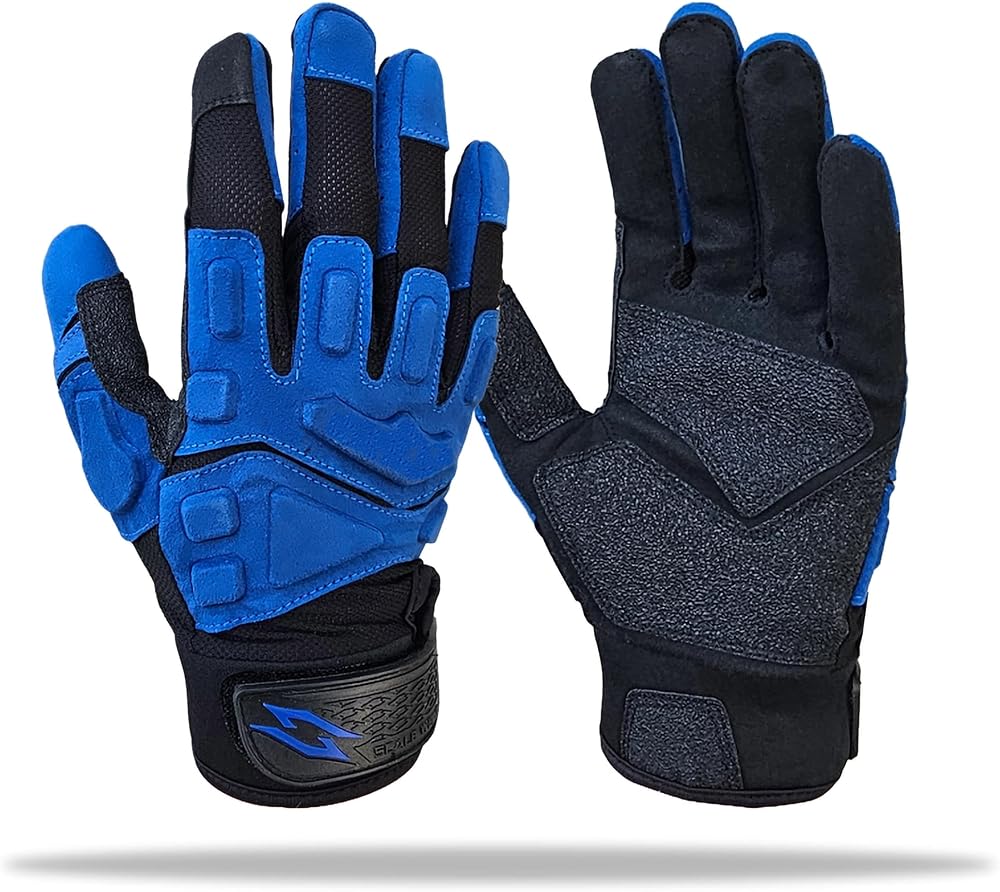 Comfort with Purpose: Moisture-wicking and ventilation technology prevent chafing and reduce distraction. Designed by pros, our padded lineman football gloves offer a thin feel to boost control with comfort and protection. These lineman football gloves are light enough to keep your hands moisture-free in all conditions, allowing you to focus on your game, while being thick enough to offer superior durability.