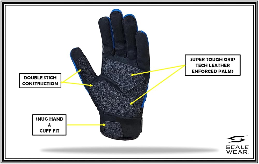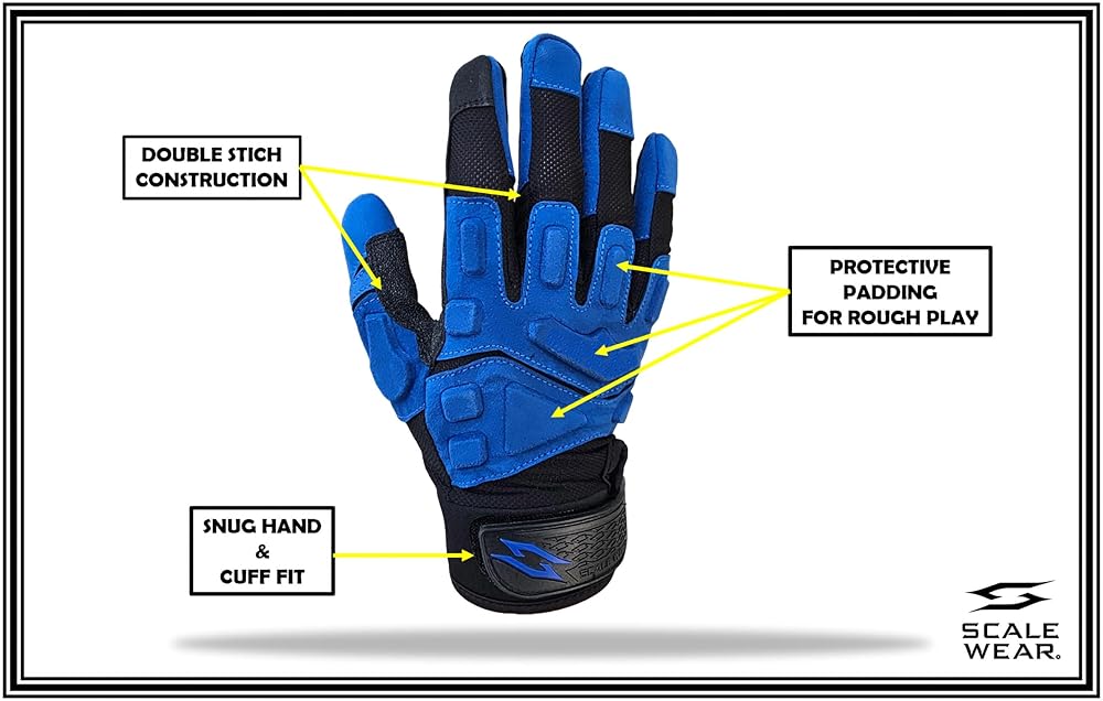 Boost Your Game: Scale Wear Padded Lineman Football Gloves. We have the knowledge and experience to provide cutting edge sportswear to enhance your game. These gloves offer optimal function that's fit for players of every level. Great for other uses like trap shooting, horse riding, and other activities that require grip and protection.