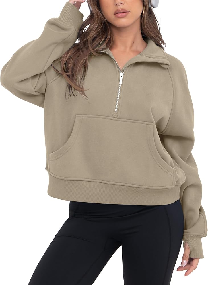 Design: This trendy womens sweatshirt combines the popular design of trendy style, dropped shoulder neck, long sleeves and half zip up. It adopts solid color, short length and loose version, which is very suitable for women and teenage girls.