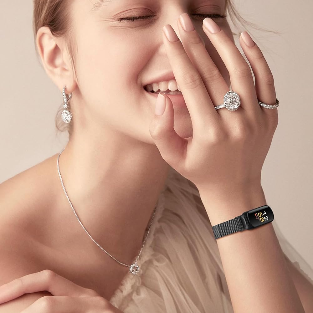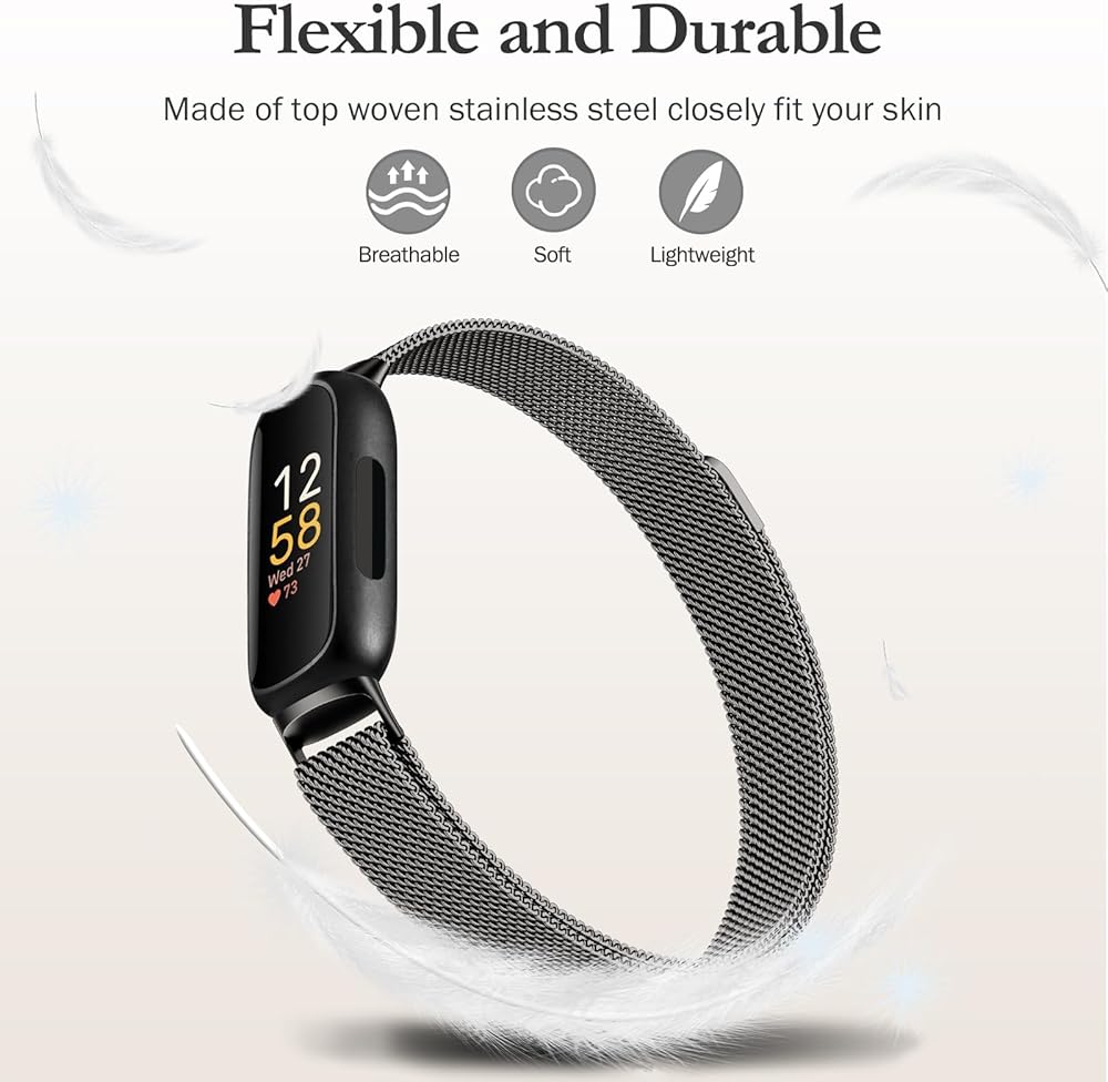 Smooth Metal Material: JKD for fitbit inspire 3 bands are crafted from high-quality stainless steel materials with polished sleek edges, that won't pinch your skin or hair. The metal mesh loop strap has no rust or corrosion, lightweight, flexible and breathable--gently wrapped around your wrist while sleeping or in daily life