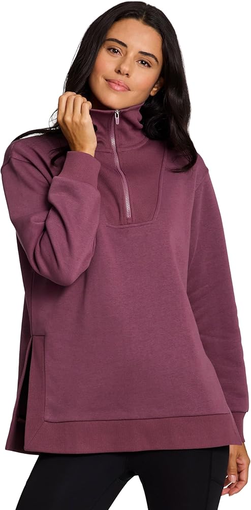 RBX Active Women's Fleece Sweatshirt, Blended Cotton Fleece Tunic Pullover Relaxed Fit Adjustable Neck Sweater