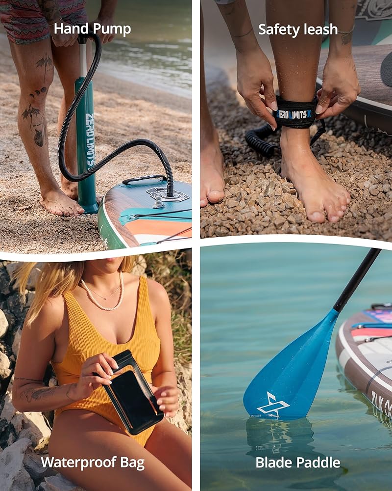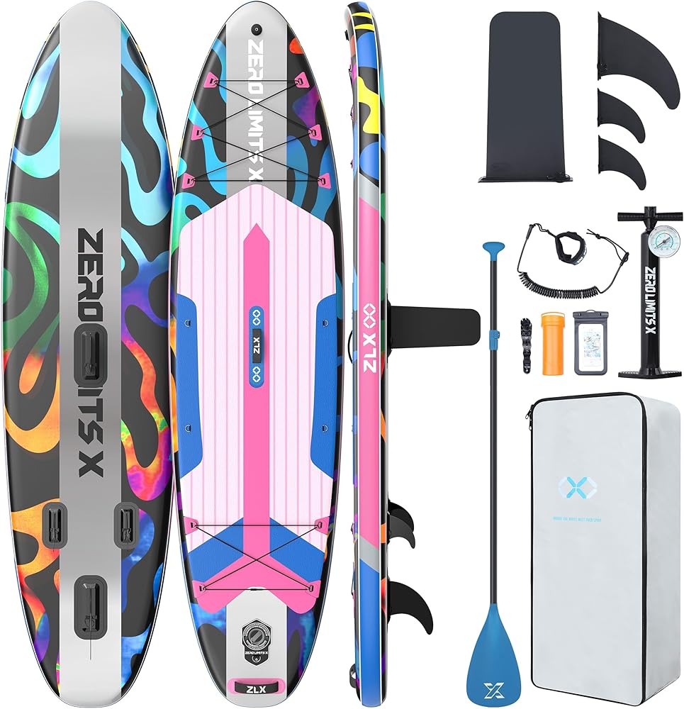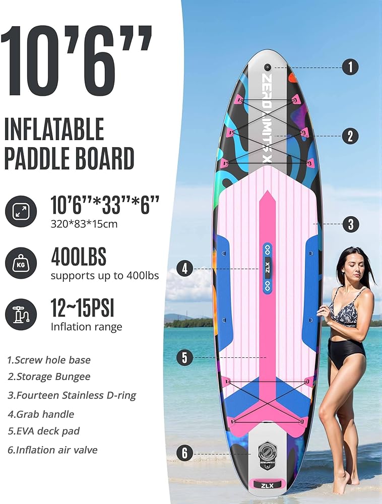 ZLX Inflatable Stand Up Paddle Board, 10'6" SUP Non-Slip Stable Deck Pad, Unique Center Fin, Premium Accessories, Paddleboard for Adults, Beginners, All Skill Levels