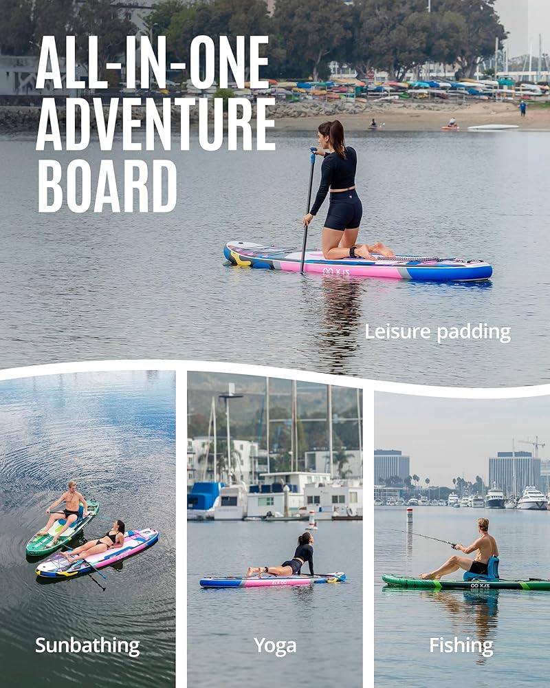 【𝗨𝗻𝗶𝗾𝘂𝗲 𝗙𝗶𝗻 𝗦𝗲𝘁𝘂𝗽 𝗕𝗲𝘁𝘁𝗲𝗿 𝗛𝗲𝗮𝗱𝗶𝗻𝗴 𝗖𝗼𝗻𝘁𝗿𝗼𝗹 & 𝗠𝗼𝗿𝗲 𝗦𝘁𝗮𝗯𝗹𝗲】- The stand up paddle board includes a main fin, 2 thruster fins, and 𝗮 𝘀𝗾𝘂𝗮𝗿𝗲 𝗯𝗮𝗹𝗮𝗻𝗰𝗲 𝗳𝗶𝗻 𝗳𝗼𝗿 𝗲𝘅𝗰𝗲𝗽𝘁𝗶𝗼𝗻𝗮𝗹 𝘁𝗿𝗮𝗰𝗸𝗶𝗻𝗴, 𝗺𝗮𝗻𝗲𝘂𝘃𝗲𝗿𝗮𝗯𝗶𝗹𝗶𝘁𝘆, 𝗮𝗻𝗱 𝗯𝗮𝗹𝗮𝗻𝗰𝗲. Ideal for fishing and yoga enthusiasts, 𝗲𝘃𝗲𝗻 𝗯𝗲𝗴𝗶𝗻𝗻𝗲𝗿𝘀.