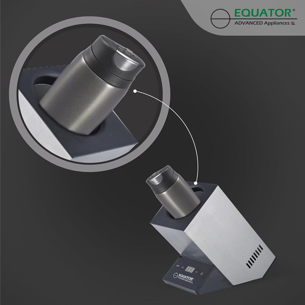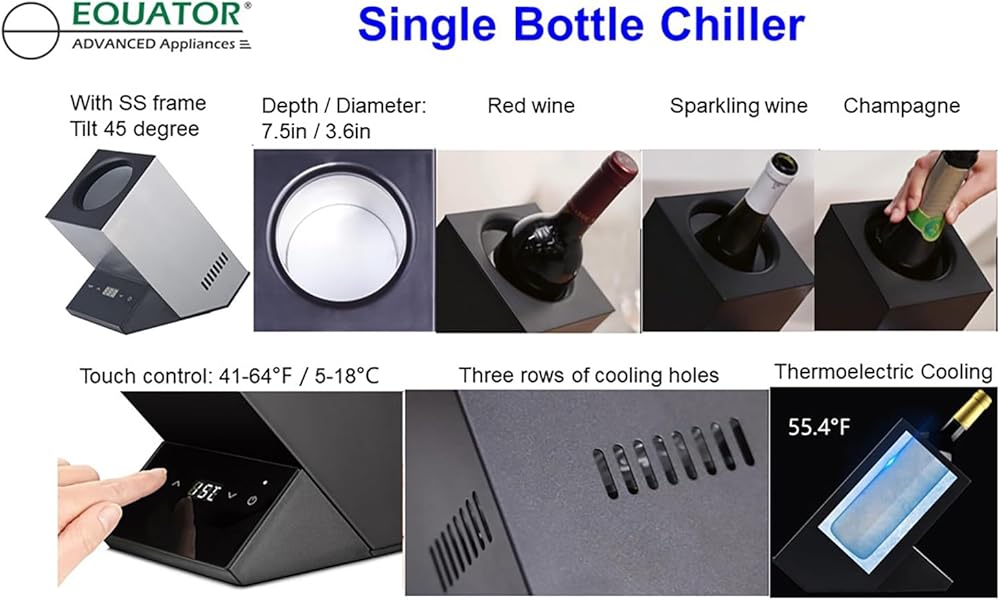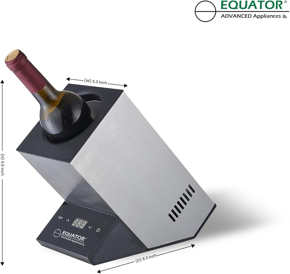 Equator 110V/12V Portable Electric Wine Chiller for Red, White and Water Bottles, 750mL Single Bottle Cooler, Stainless Body, Rechargeable, 24h Cold, Ideal for Parties & Gifts (SS)
