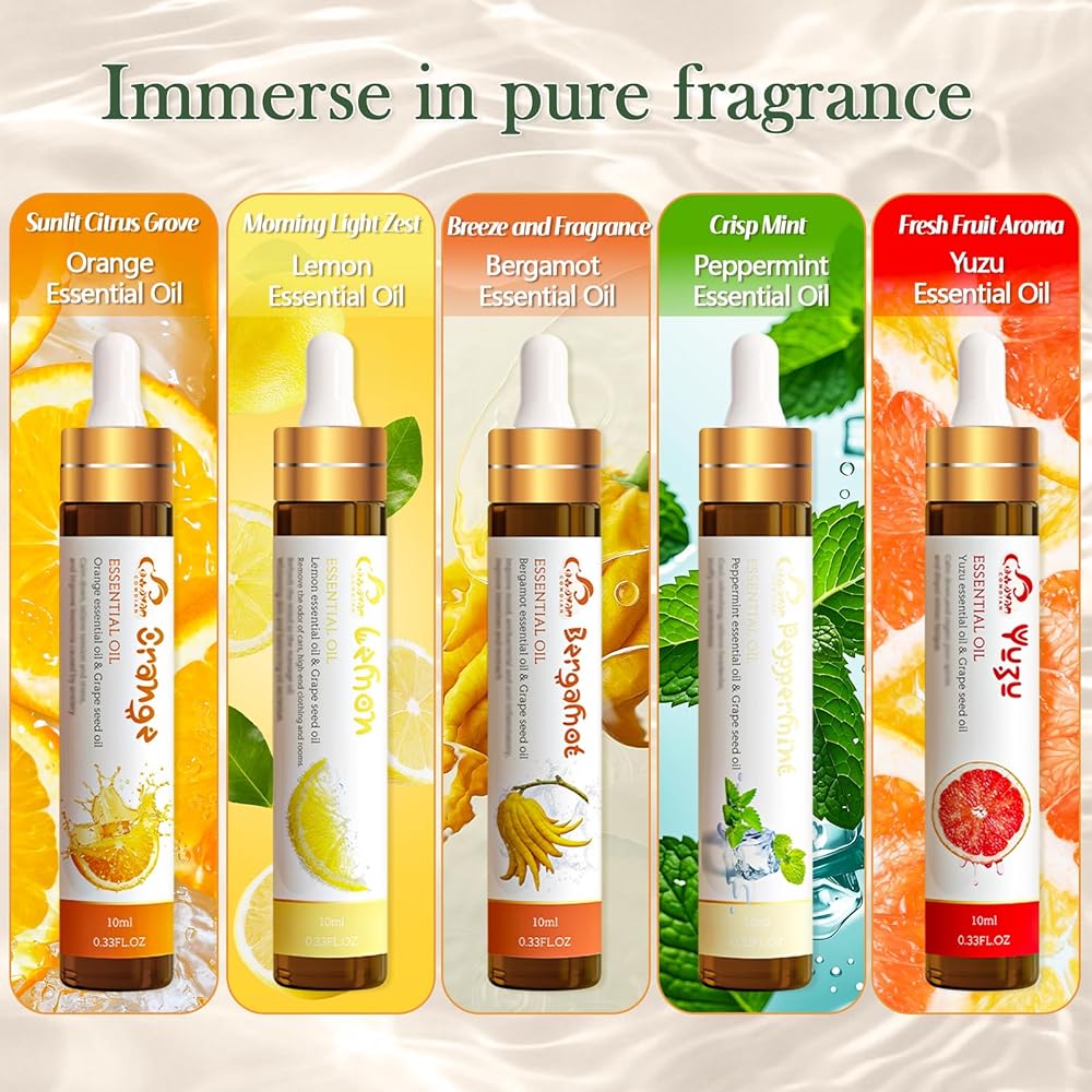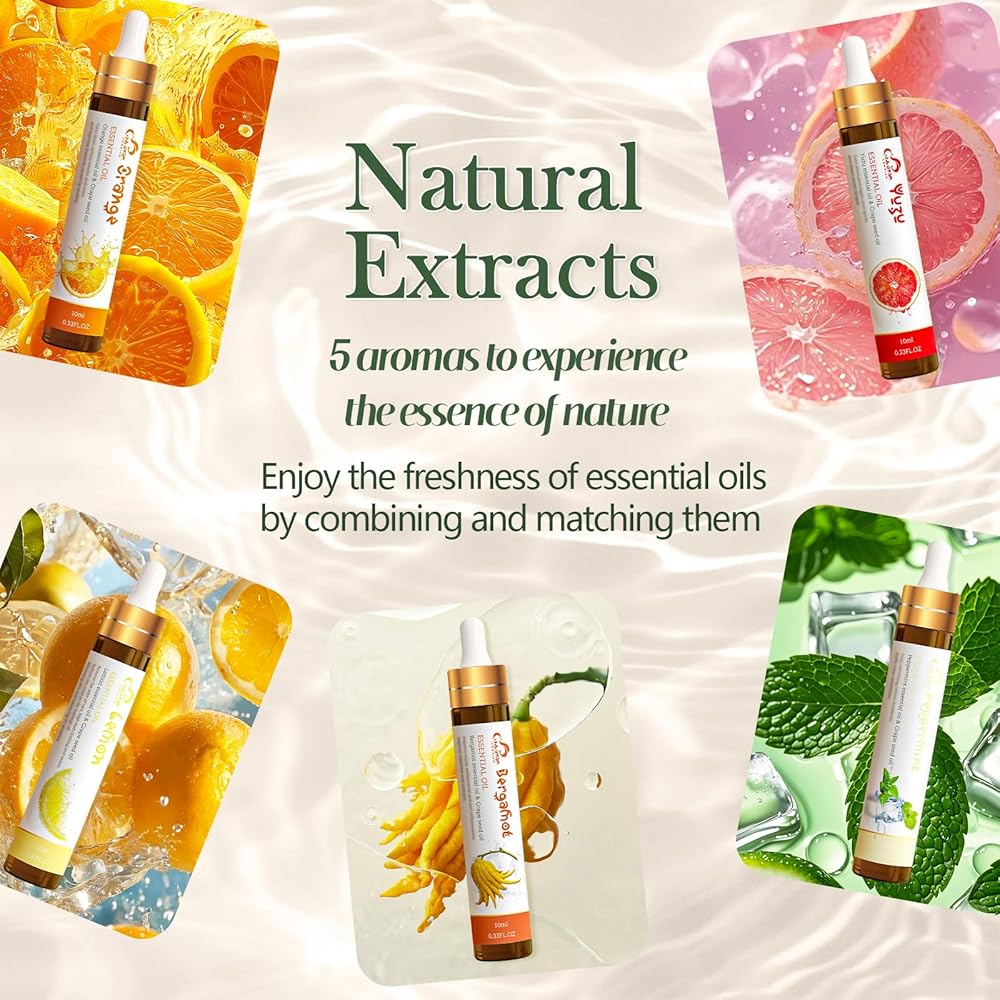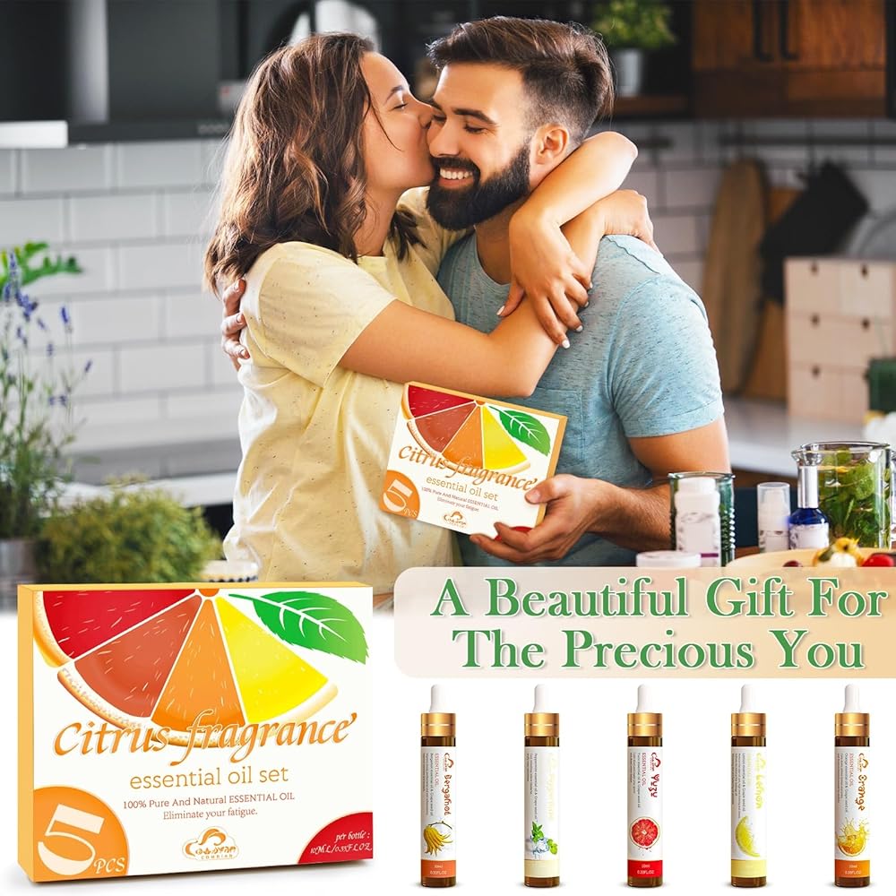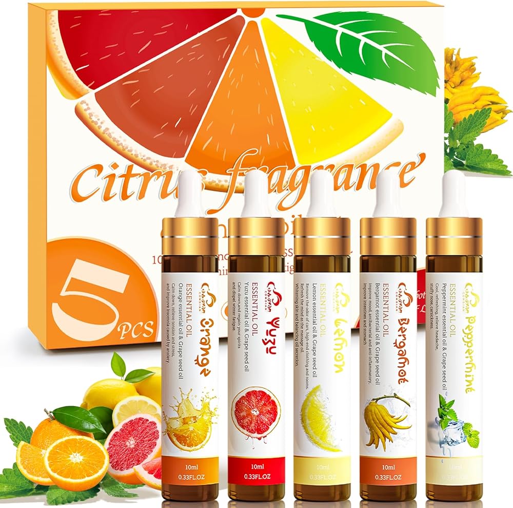 Essential Oils Set 5 Pcs, Fragrance Set for Diffuser, Home, Candle Making, Citrus Essential Oils for Skin, Spa, Fragrance Oil for Women and Men - Lemon, Bergamot, Orange, Peppermint, Yuzu