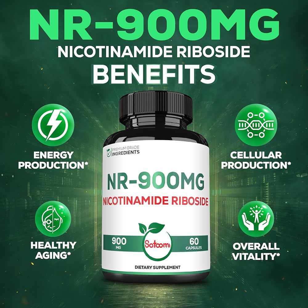🌿 Unique Ingredient: NAD Supplement with 900mg Nicotinamide Riboside (NR), specifically chosen for its role in supporting cellular repair, healthy aging and overall vitality.