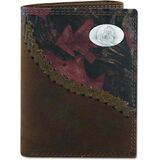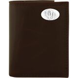 Carry your Oklahoma Sooners school and team spirit with you at all times. This brown genuine smooth wrinkle leather trifold wallet is decorated with a silver gun metal concho and features bill and checkbook compartments, an ID window, six card slots, photo sleeve insert and spare key holder. Attractive bagging to make the perfect gift for the ultimate Sooner fan.