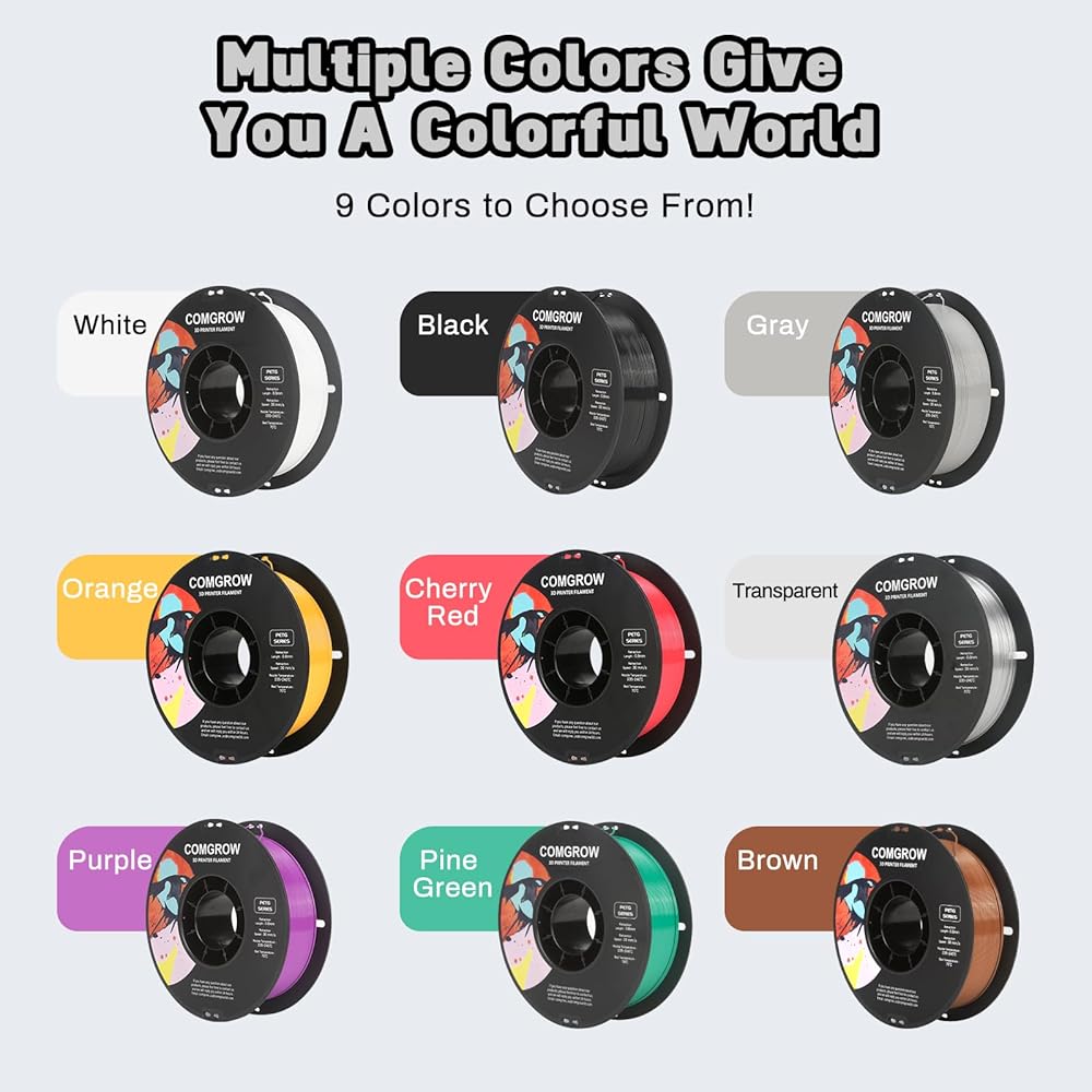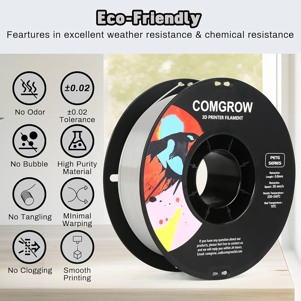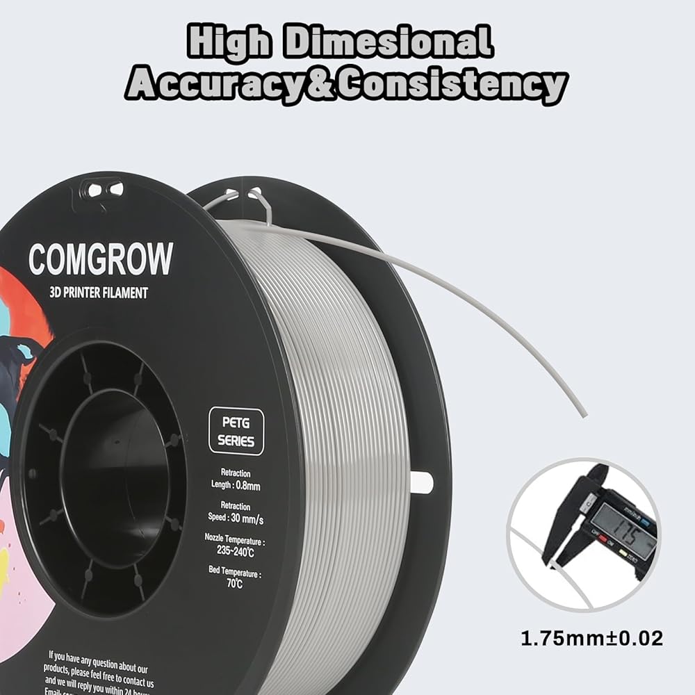 High Precision: PETG filament diameter:1.75mm, ensuring utmost accuracy with a tolerance of only +/- 0.02mm. With strict quality control and impeccable dimensional precision, PETG filament guarantees a smooth and steady feeding during printing.