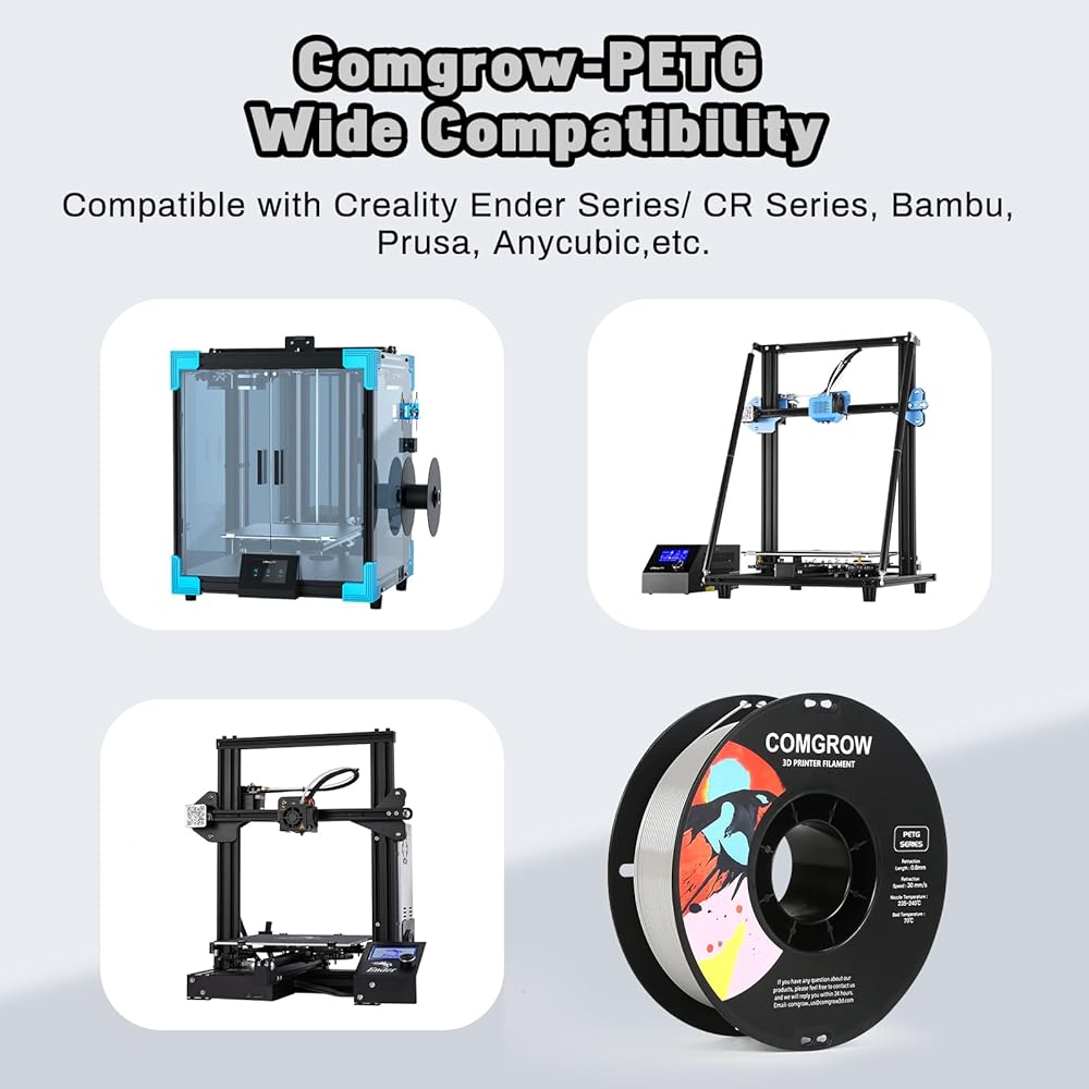 No Clogging & No Bubbles:Filaments are thoroughly dried and carefully vacuum sealed to protect them from moisture and dust, which ensures that there will be no issues with clogging or bubbling during printing. PETG is designed to be perfectly compatible with the majority of 1.75mm FDM 3D printers