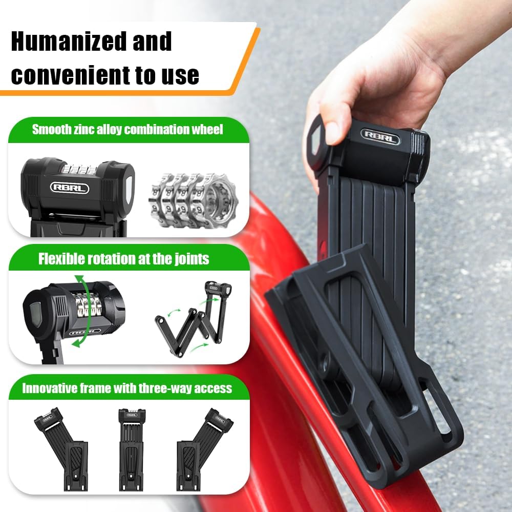 【Special Rivet Protection】:Our smartly designed rivet protection makes RBRL bike chain lock ultimate secure, preventing several types of potential attacks. Its pivot motion helps the links rotate smoothly around the axis, easy to fold and unfold. It also ensures a relatively slient riding