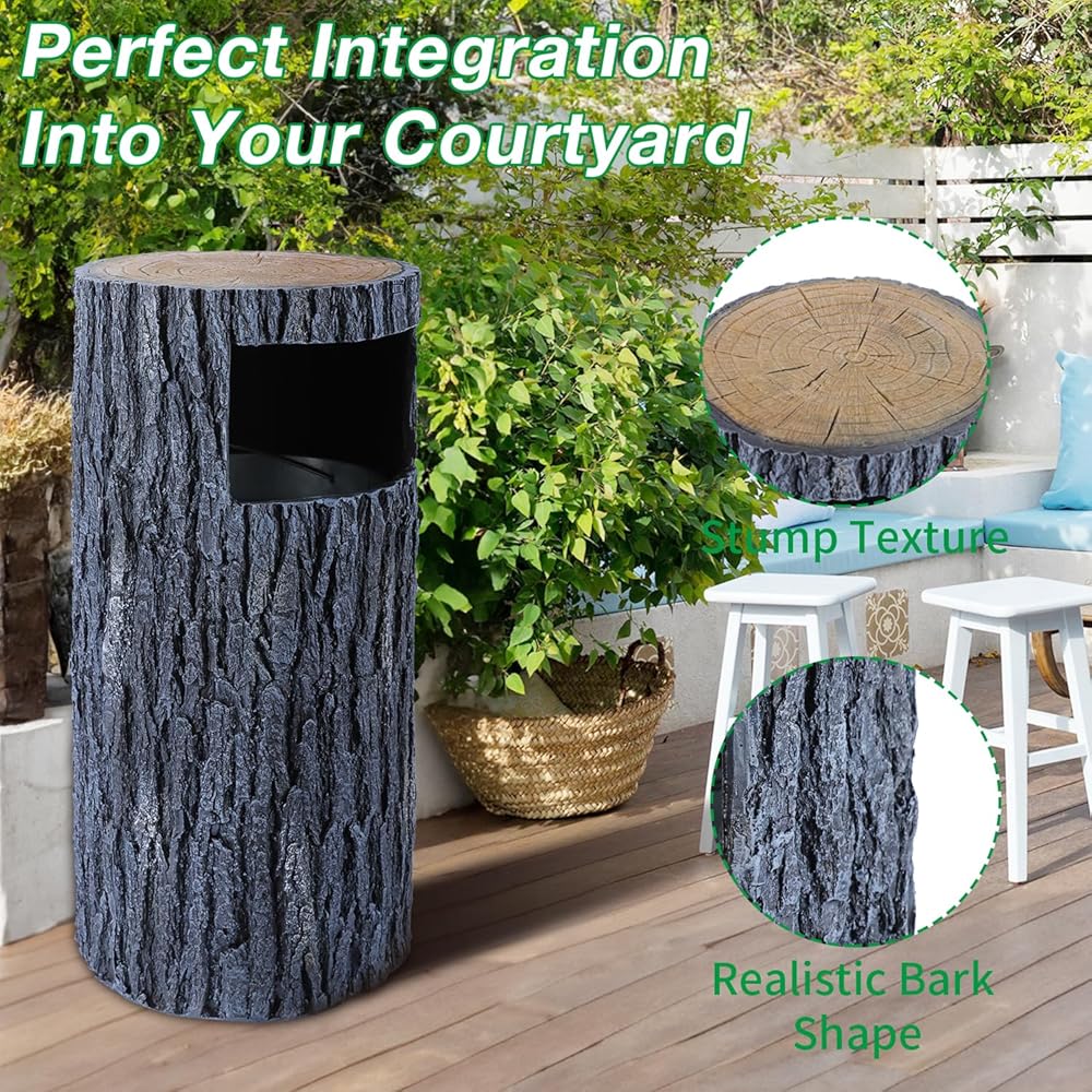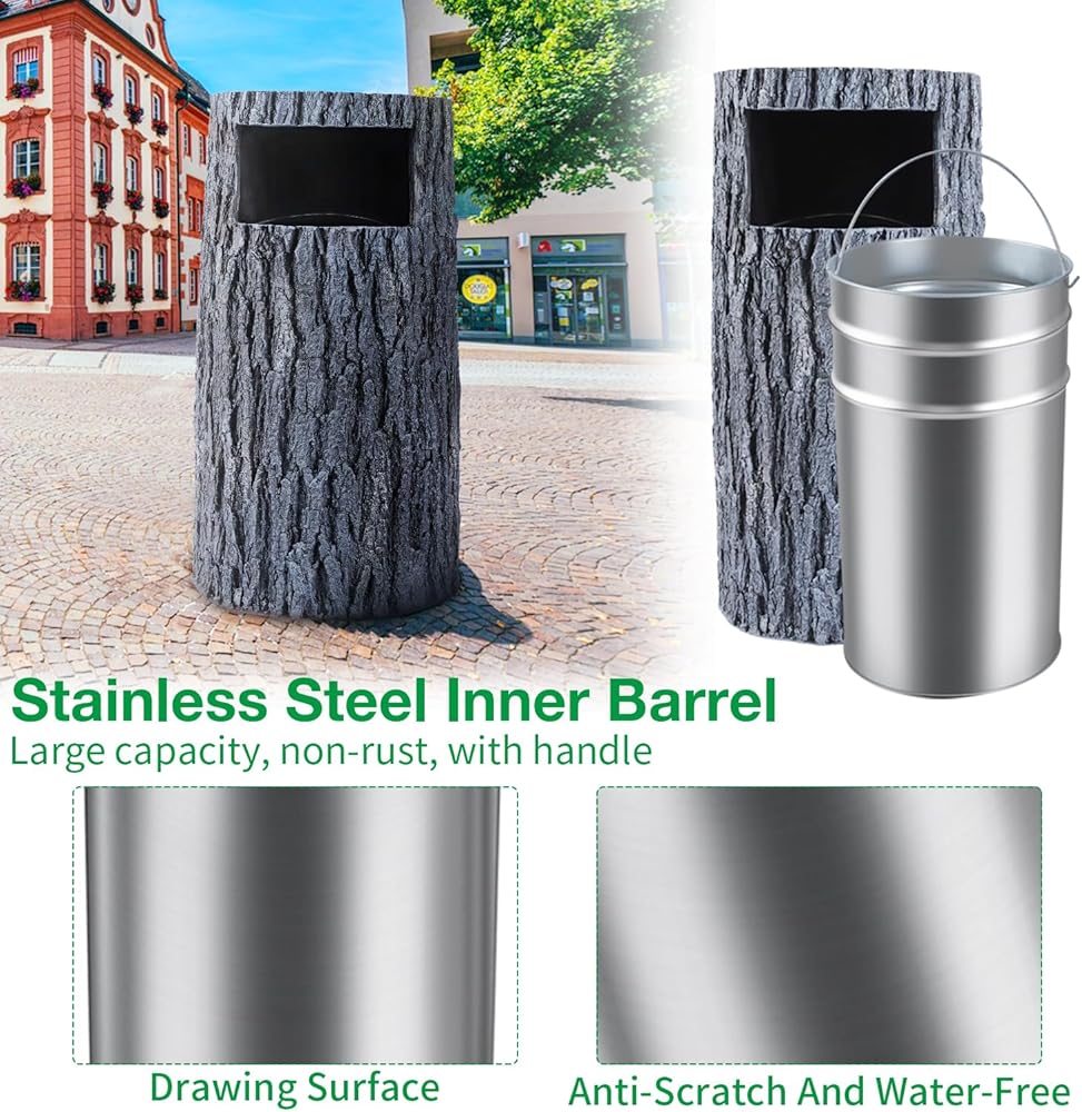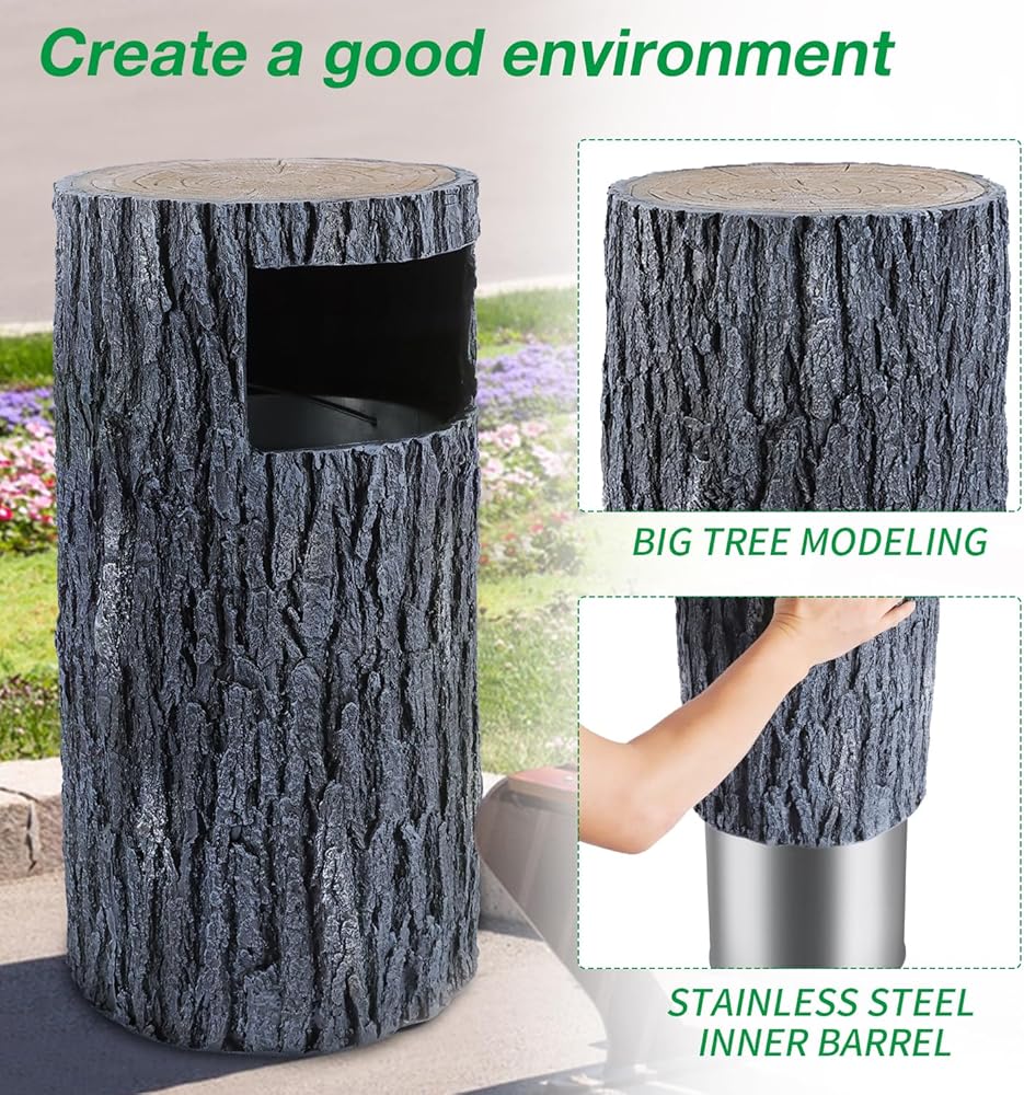 Easy to Install: This outdoor trash can consists of two parts, a resin stump shell and an iron trash can, which together form the stump trash can. It only takes two steps. First, you need to pick up the resin stump shell and place it on the built-in iron trash can,no need use any tools