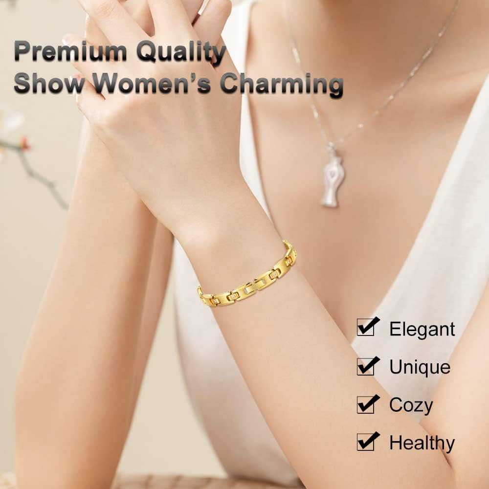 UNIQUE ADVANTAGE: Titanium is undoubtedly the best daily metal, it is healthier, will not irritate the skin, compared to stainless steel it is lighter, harder texture, and more wear-resistant. This premium magnetic bracelet for women is made of pure titanium, you do not need to worry about any quality issues