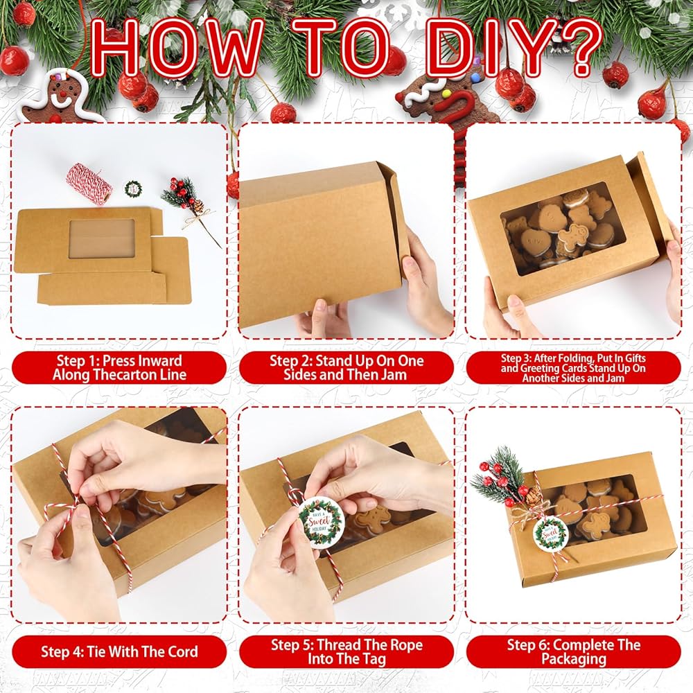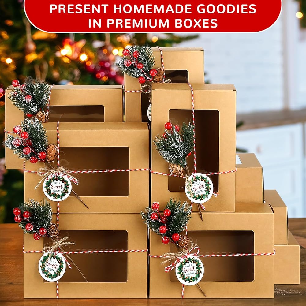 Our Christmas cookie boxes are not just for cookies. They are ideal for a variety of homemade goodies including chocolates, desserts, brownies, cupcakes, and more. The generous size and sturdy design accommodate different types of treats, making these boxes an excellent choice for all your holiday baking and gifting needs.