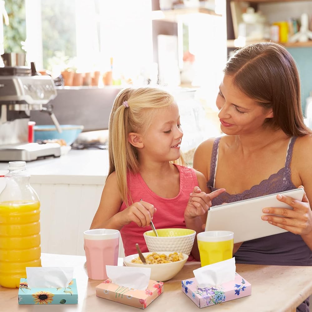 TaoBary 24 Packs Flower Small Boxes of Tissues Car Facial Tissue Boxes Disposable Tissue Packs Cube Facial Tissues 2 Ply 960 Sheets for Holiday Party Bathroom Office Floral Home Decor