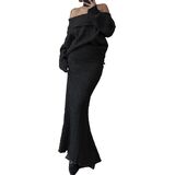 SPECIFICATIONS:This casual women's 2-piece set includes an off shoulder sweater and a knitted long skirt.Sweater top with off the shoulder,batwing long sleeves,soft knit material,high-stretch.Straight knit skirt with pencil leg,ankle length,ribbed packaged hip