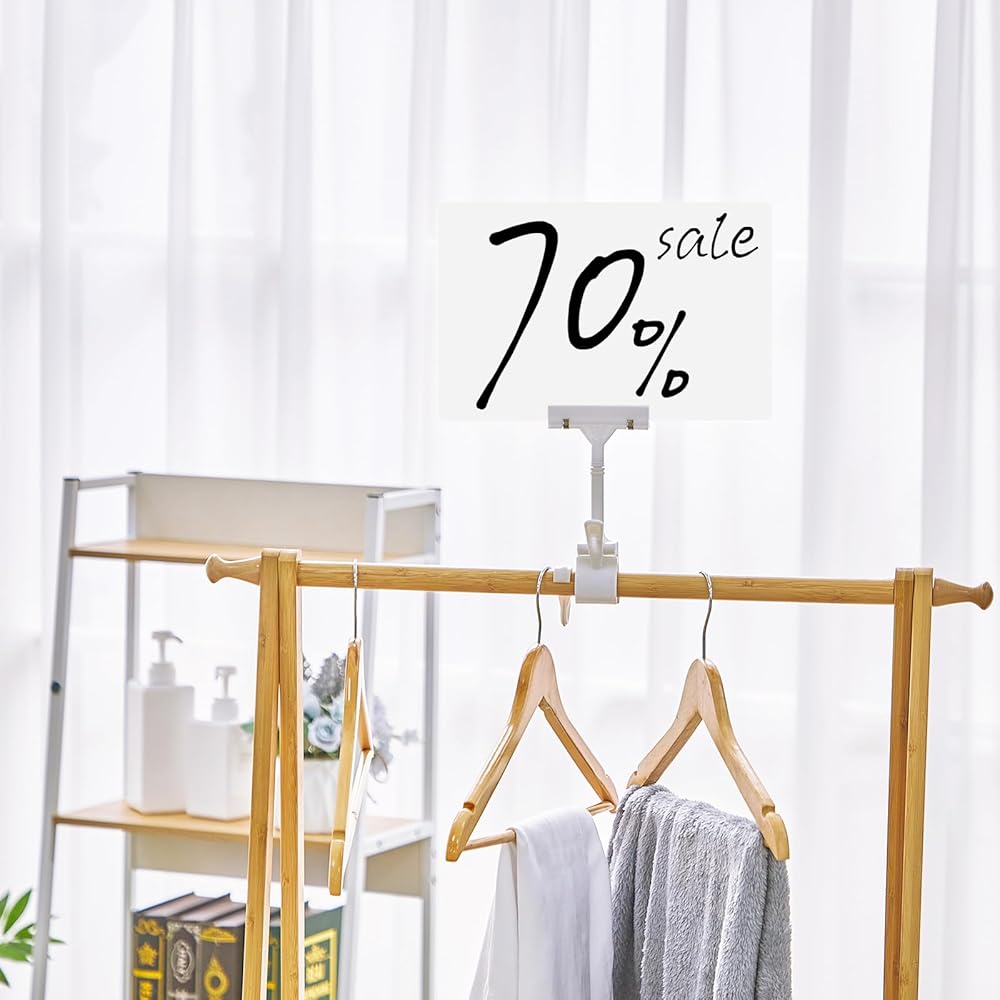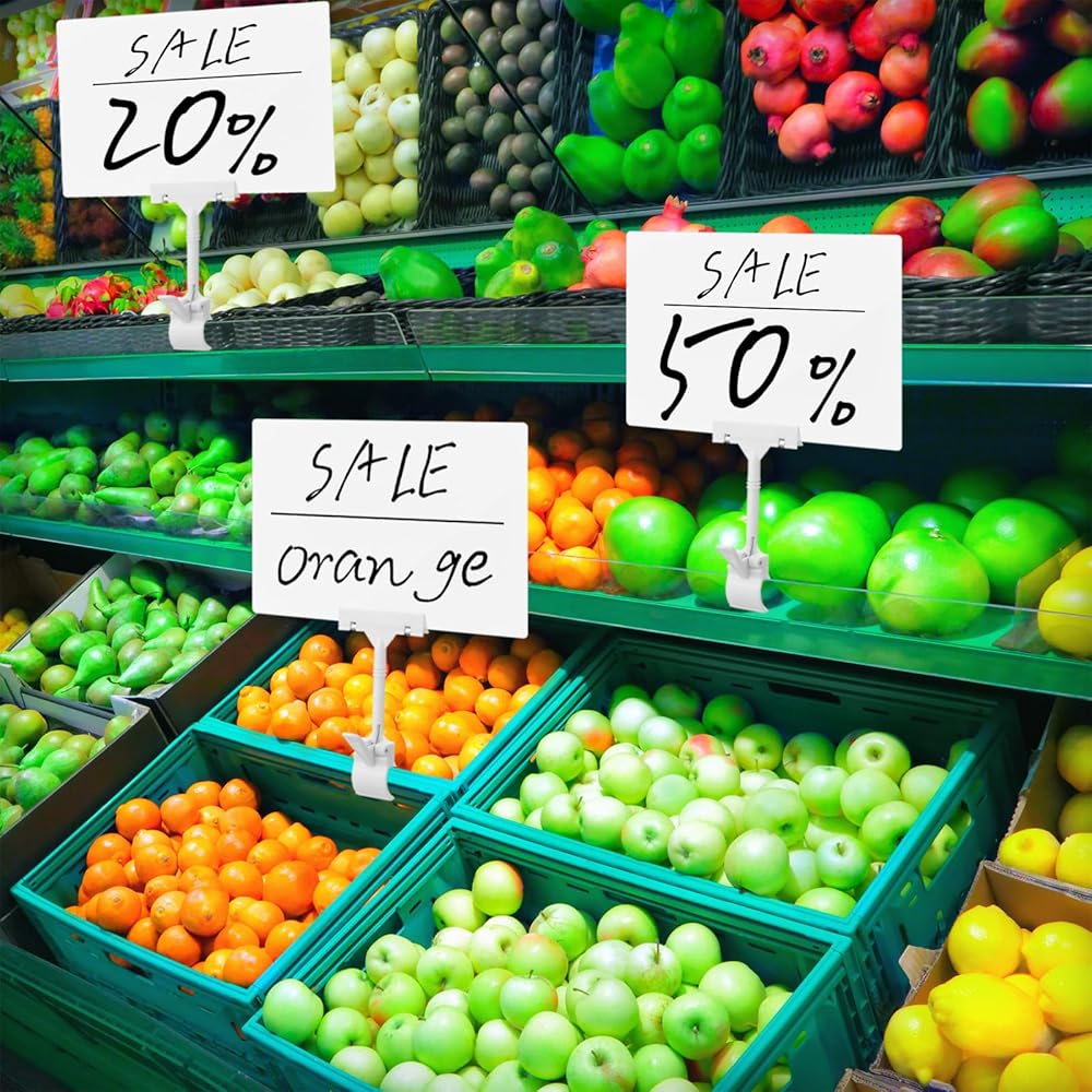 Erasable and Waterproof: this sort of price display signs surface is smooth, flat and usable on both sides, making it easy to use types of markers to write what you want on it (chalk is not allowed); Coming with a transverse base clip for the stand, and insert the rod into the hole in its center (the hole is connected by the ball knuckles), in addition, you can erase written signage for reuse