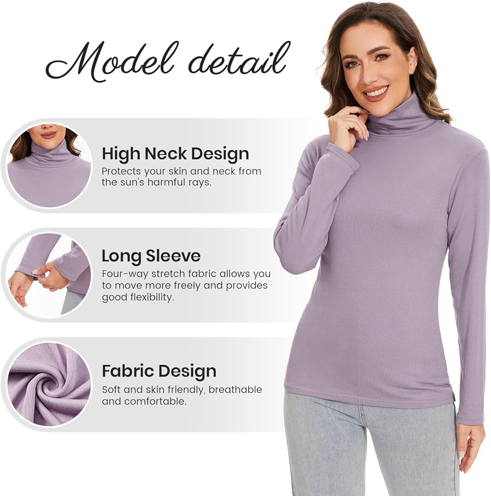 【Turtleneck Shirt Women Materials】Long Sleeve Turtleneck Shirts For Women is Made of 96.5% Rayon,3.5% Spandex,Soft and Skin-Friendly,Breathable and Moisture Wicking,Keep Cool All Day Long.