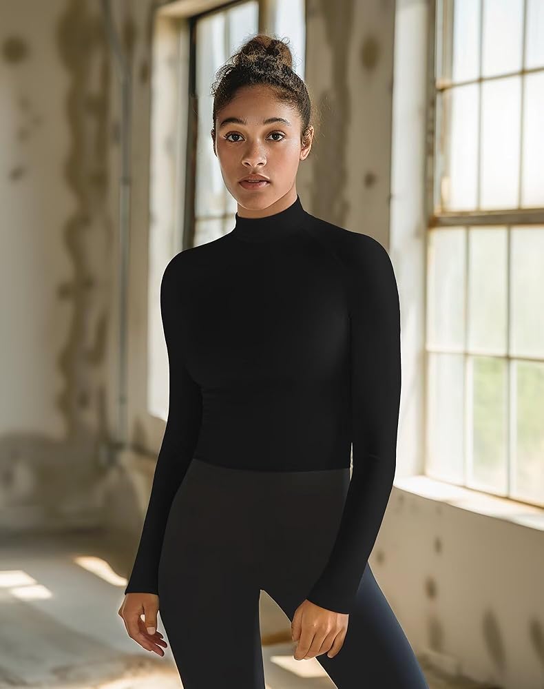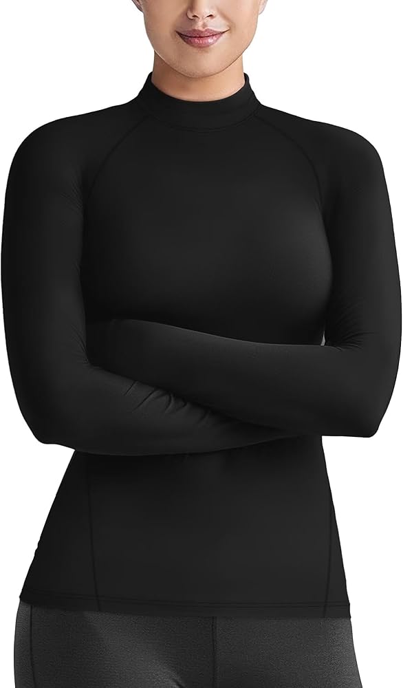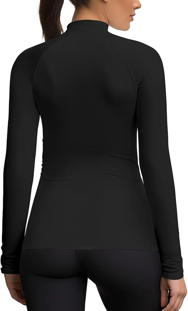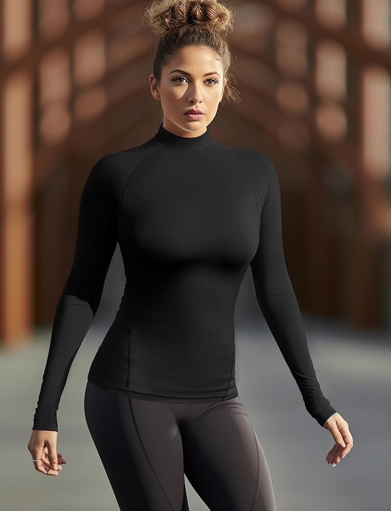Mock Neck Long Sleeve Workout Top: Made from thermal knit fabric, lightweight,soft,comfortable,elastic and warm.