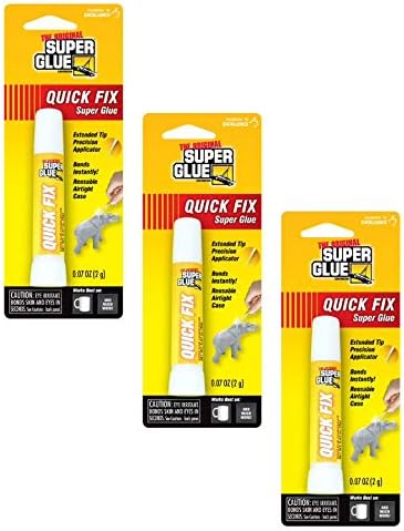 Quick Fix Super Glue contains a 2 gram bullet tube of our Original formula Super Glue and comes in a handy reusable, airtight case. The bullet tube fits securely in the end cap for ease of use. The included extender tip allows for precise application into tight spots or when very small drops of glue are needed. Instantly bonds metal, rubber, aluminum, most plastics, ceramics, china wood, pottery, jewelry and more.