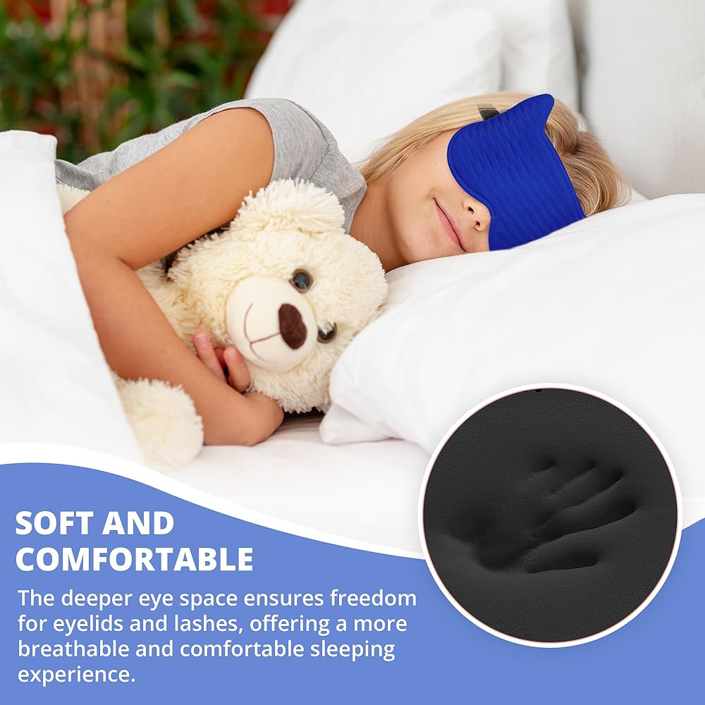【Cute 3D Cat Face Design】Designed with playful cat ears, this kids sleep mask is perfect for children and teens aged 5-15. The cute design helps make sleep time exciting and fun, encouraging even the fussiest little ones to settle down for a good night's rest