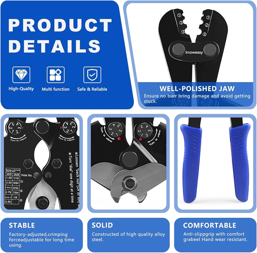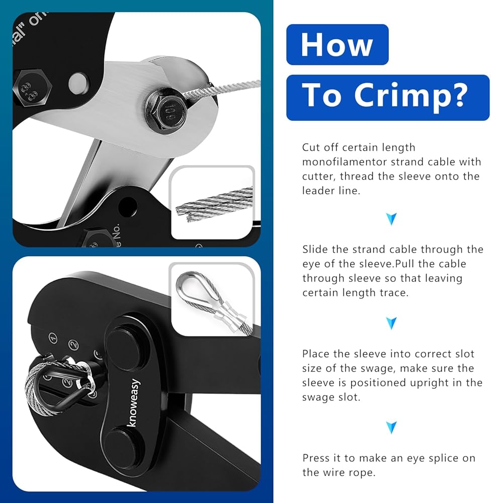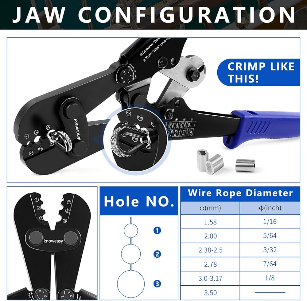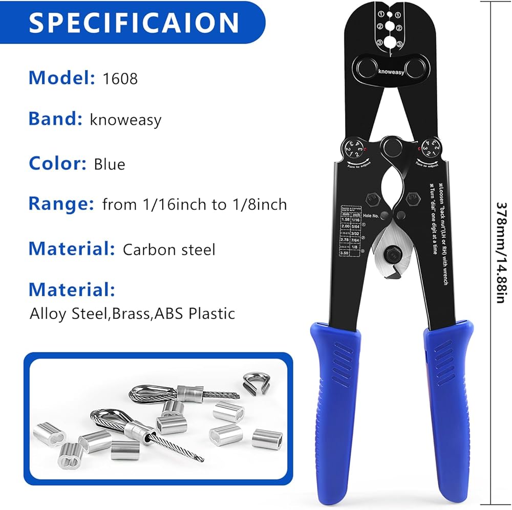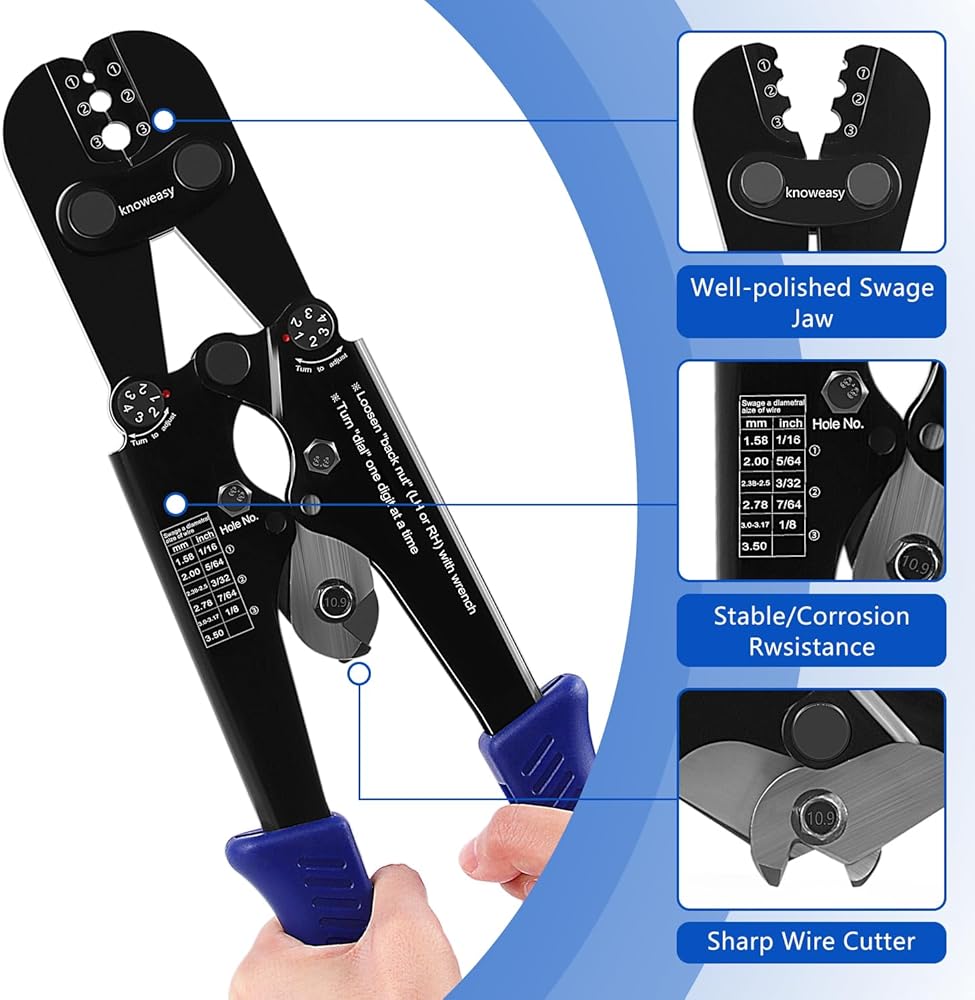 Knoweasy Professional Wire Rope Crimping and Cutting Tool, for 1/16 to 1/8 Inch Cables, Ideal for Aluminum Sleeves, Duplex, and Ferrules - Versatile Swaging Tool with Integrated Cable Cutter