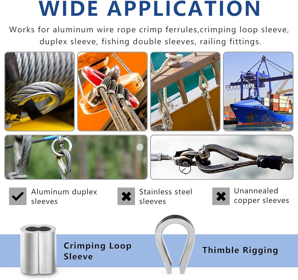 【Versatile Crimping Power】: Masterfully swages steel, copper, and aluminum oval sleeves and stop loops, catering to diverse wire rope needs