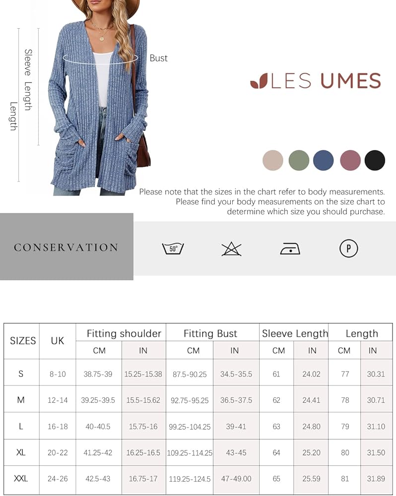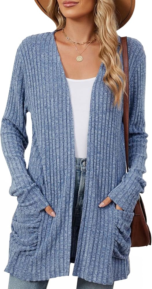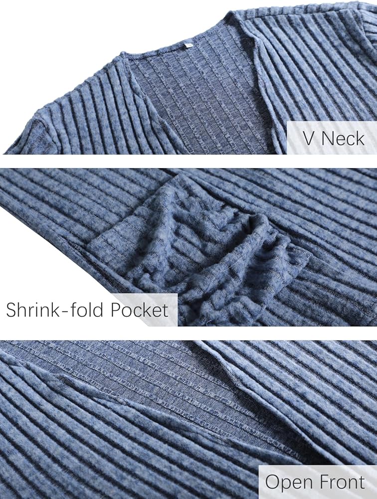 Casual Long cardigans for women features long sleeve, open front, rib knittd solid color, with 2 pockets, nice cardigan drapes well and fits well for different body types, mid-long length above the knee.