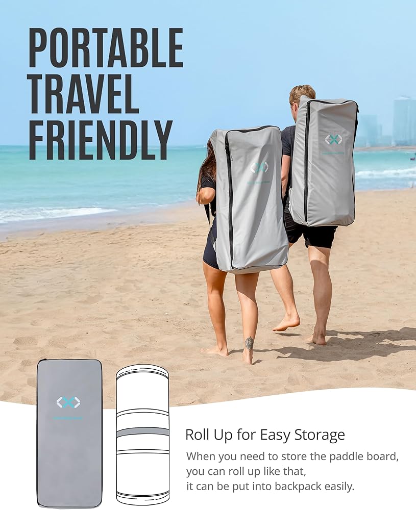 【𝗖𝗼𝗺𝗽𝗹𝗲𝘁𝗲 𝗔𝗰𝗰𝗲𝘀𝘀𝗼𝗿𝗶𝗲𝘀】- The paddle boards package comes with 𝗮𝗻 𝗮𝗱𝗷𝘂𝘀𝘁𝗮𝗯𝗹𝗲 𝗽𝗮𝗱𝗱𝗹𝗲, 𝟰 𝗱𝗲𝘁𝗮𝗰𝗵𝗮𝗯𝗹𝗲 𝗳𝗶𝗻𝘀, 𝗮 𝘀𝗮𝗳𝗲𝘁𝘆 𝗹𝗲𝗮𝘀𝗵, 𝗮 𝗽𝘂𝗺𝗽, 𝗮 𝗯𝗮𝗰𝗸𝗽𝗮𝗰𝗸, 𝗮 𝘄𝗮𝘁𝗲𝗿𝗽𝗿𝗼𝗼𝗳 𝗽𝗵𝗼𝗻𝗲 𝗯𝗮𝗴, 𝗮𝗻𝗱 𝗮 𝗿𝗲𝗽𝗮𝗶𝗿 𝗸𝗶𝘁. The comfortable padded backpack makes transportation easy, making it more convenient.