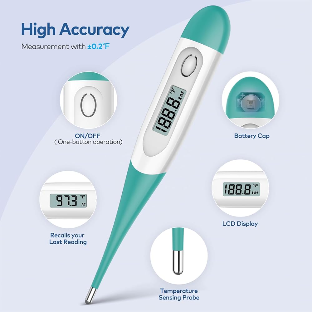 Safe Digital Thermometer for Adults: Soft silicone tip with stainless steel probe is reliable. A medical basal thermometer is convenient and safe for you and your family