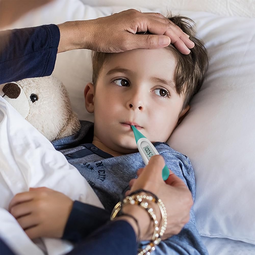 Boncare 10 Seconds Digital Thermometer for Adults and Kids - Accurate & Safe Rectal Thermometer for Baby with Fever Alarm, Oral Thermometer (Clear Blue)
